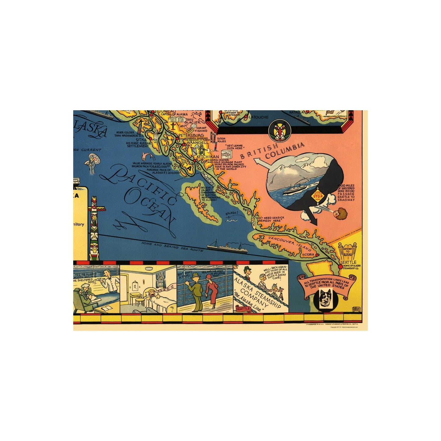 Old Travel Map - Alaska Steamship Co - Farwest 1934 - This is an exquisite full-color Reproduction printed on high-quality gloss paper, art paper or canvas.