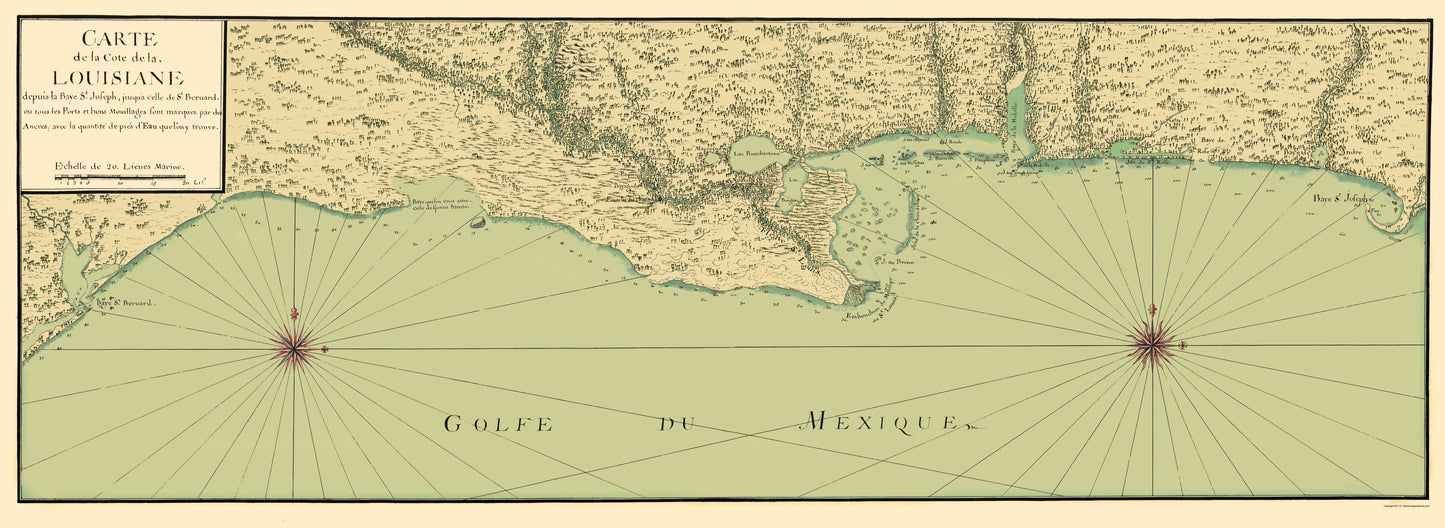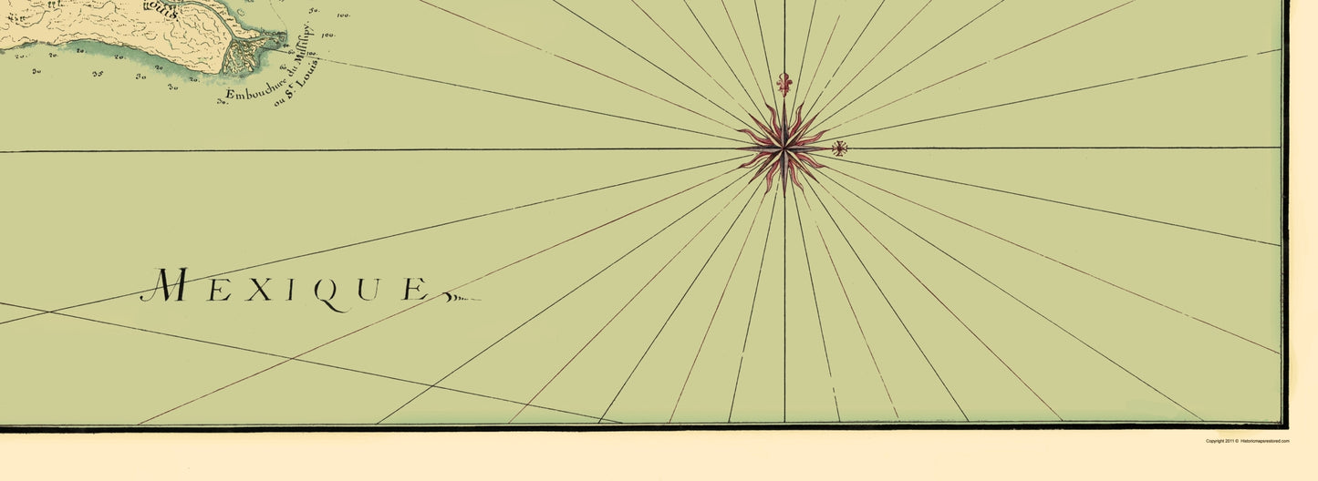 Old State Map - Gulf Coast Nautical Map - 1732 - This is an exquisite full-color Reproduction printed on high-quality gloss paper, art paper or canvas.