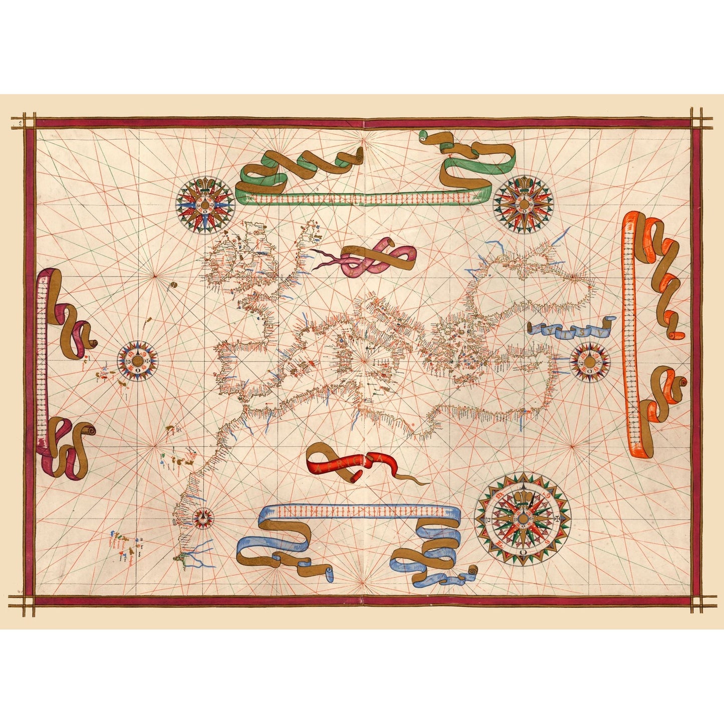 Old International Maps - Mediterranean Ports Europe Africa - Martines 1587 - 31.09 x 23 - This is an exquisite full-color Reproduction printed on high-quality gloss paper, art paper or canvas.