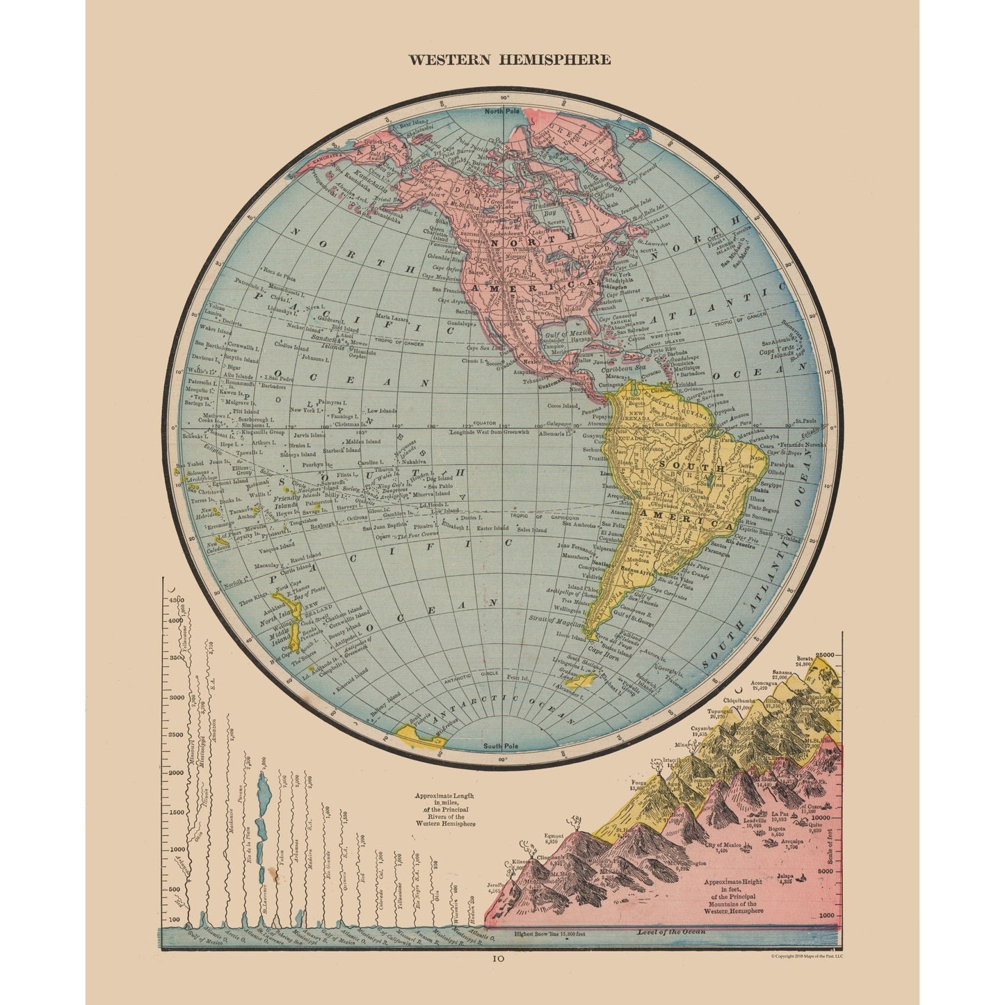 Old International Maps - Western Hemisphere, River Lengths - Cram's Atlas 1888 - This is an exquisite full-color Reproduction printed on high-quality gloss paper, art paper or canvas.