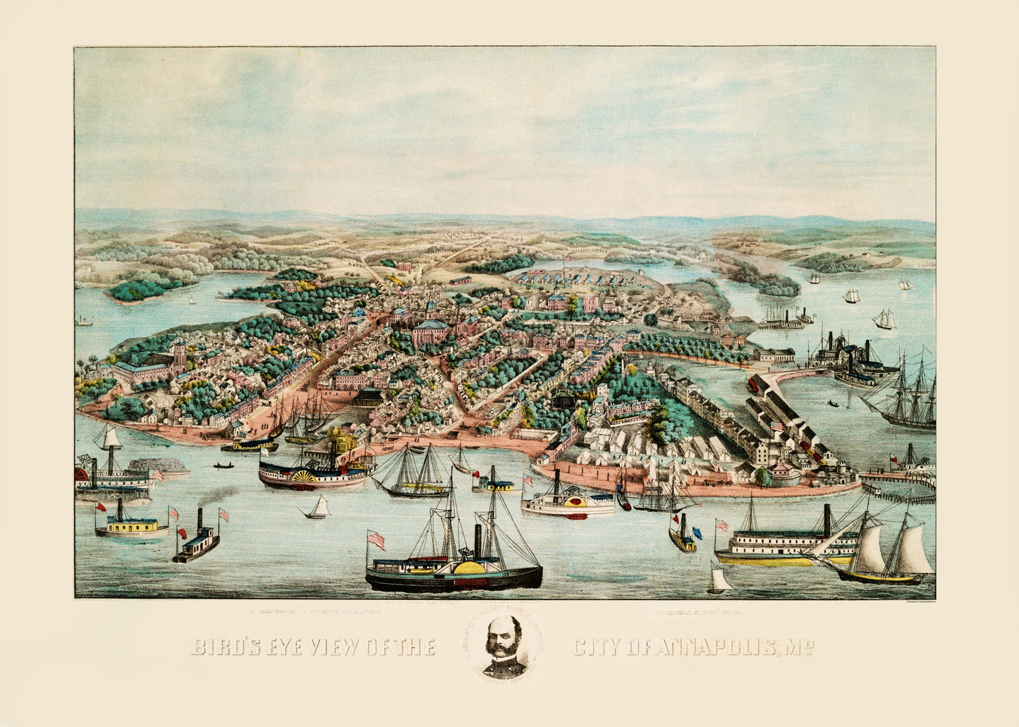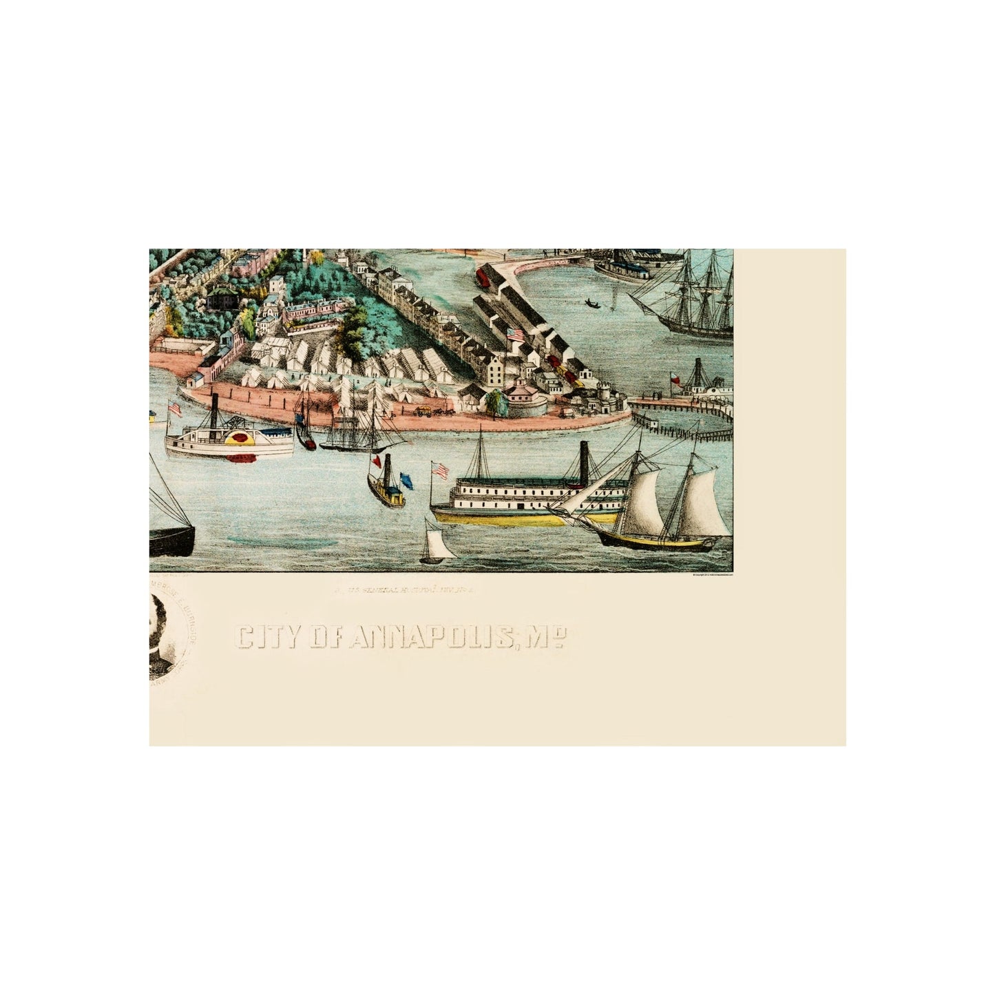 Historic Panoramic View - Annapolis Maryland - Magnus 1864 - 23 x 32.23 - Vintage Wall Art