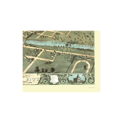 Panoramic Print - Iowa City Iowa - Chicago Litho 1868 - This is an exquisite full-color Reproduction printed on high-quality gloss paper, art paper or canvas.