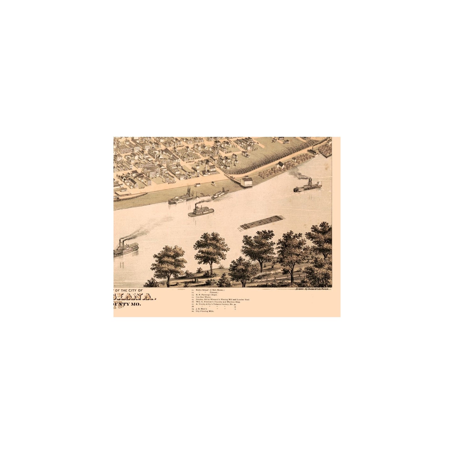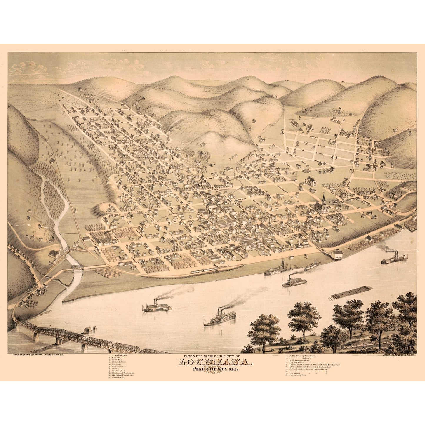 Old Panoramic Maps - Louisiana Missouri - Koch 1876 - 28.96 x 23 - This is an exquisite full-color Reproduction printed on high-quality gloss paper, art paper or canvas.