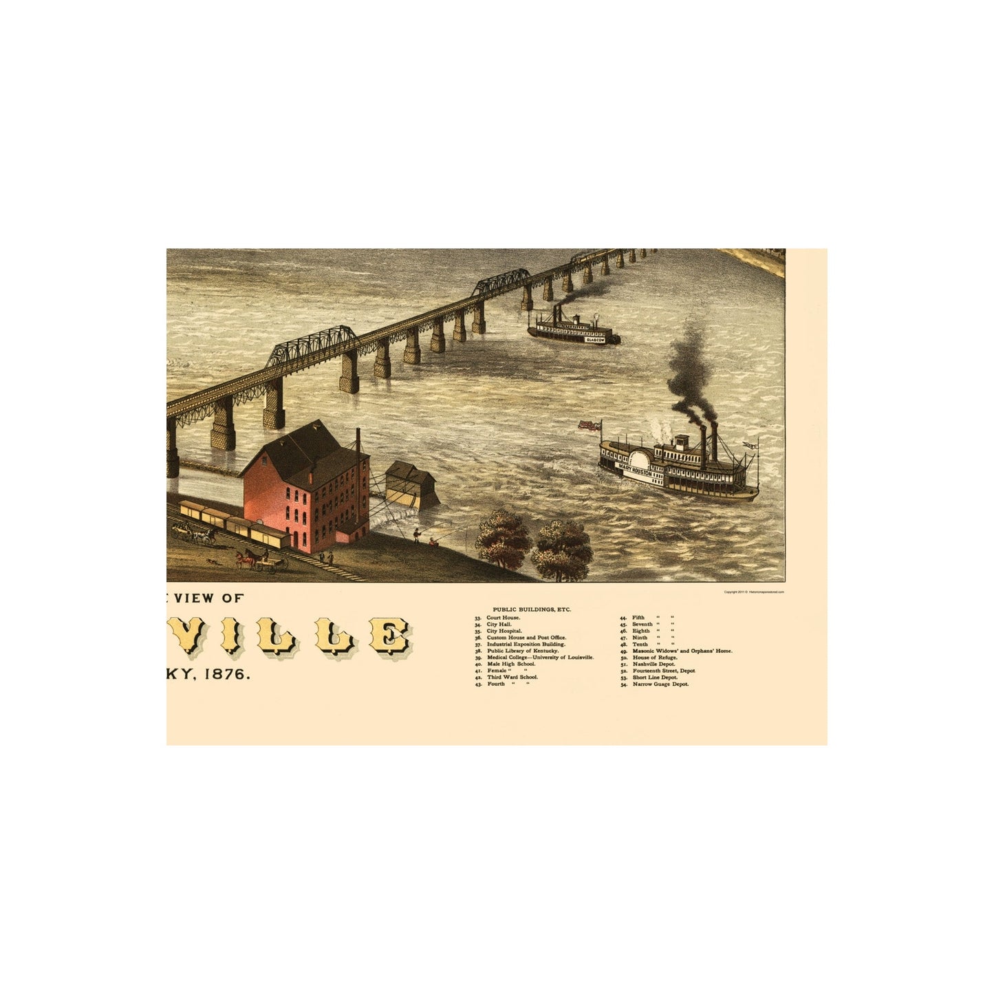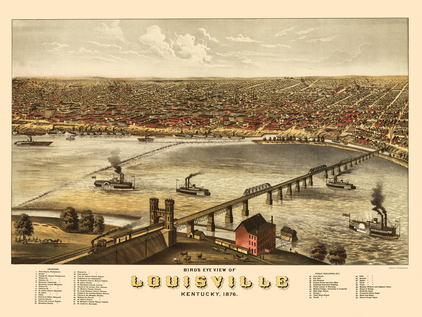 Historic Panoramic View - Louisville Kentucky - Ruger 1876 - 23 x 30.61 - Vintage Wall Art