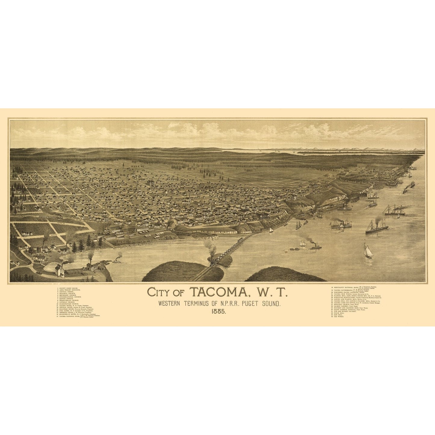 Old Panoramic Maps - Tacoma Washington - 1885 - This is an exquisite full-color Reproduction printed on high-quality gloss paper, art paper or canvas.