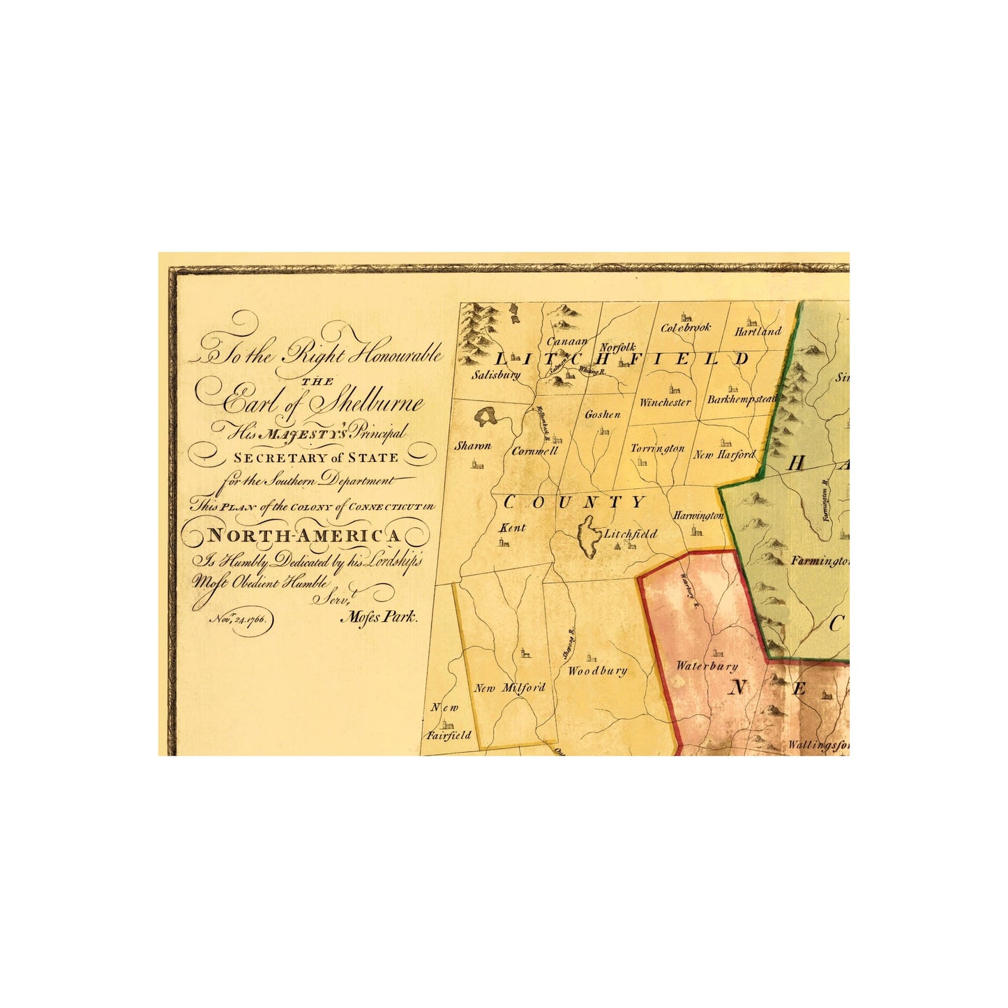 Historic Revolutionary War Map - Connecticut Colony - Park 1766 - 23 x 35.94 - Vintage Wall Art