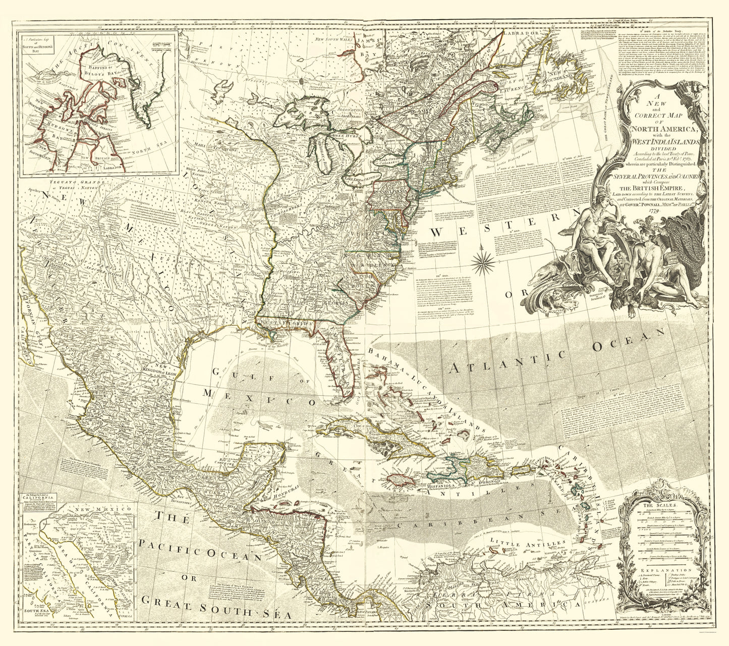 Old Revolutionary War Map - North America With the indian Islands 1763 - This is an exquisite full-color Reproduction printed on high-quality gloss paper, art paper or canvas.