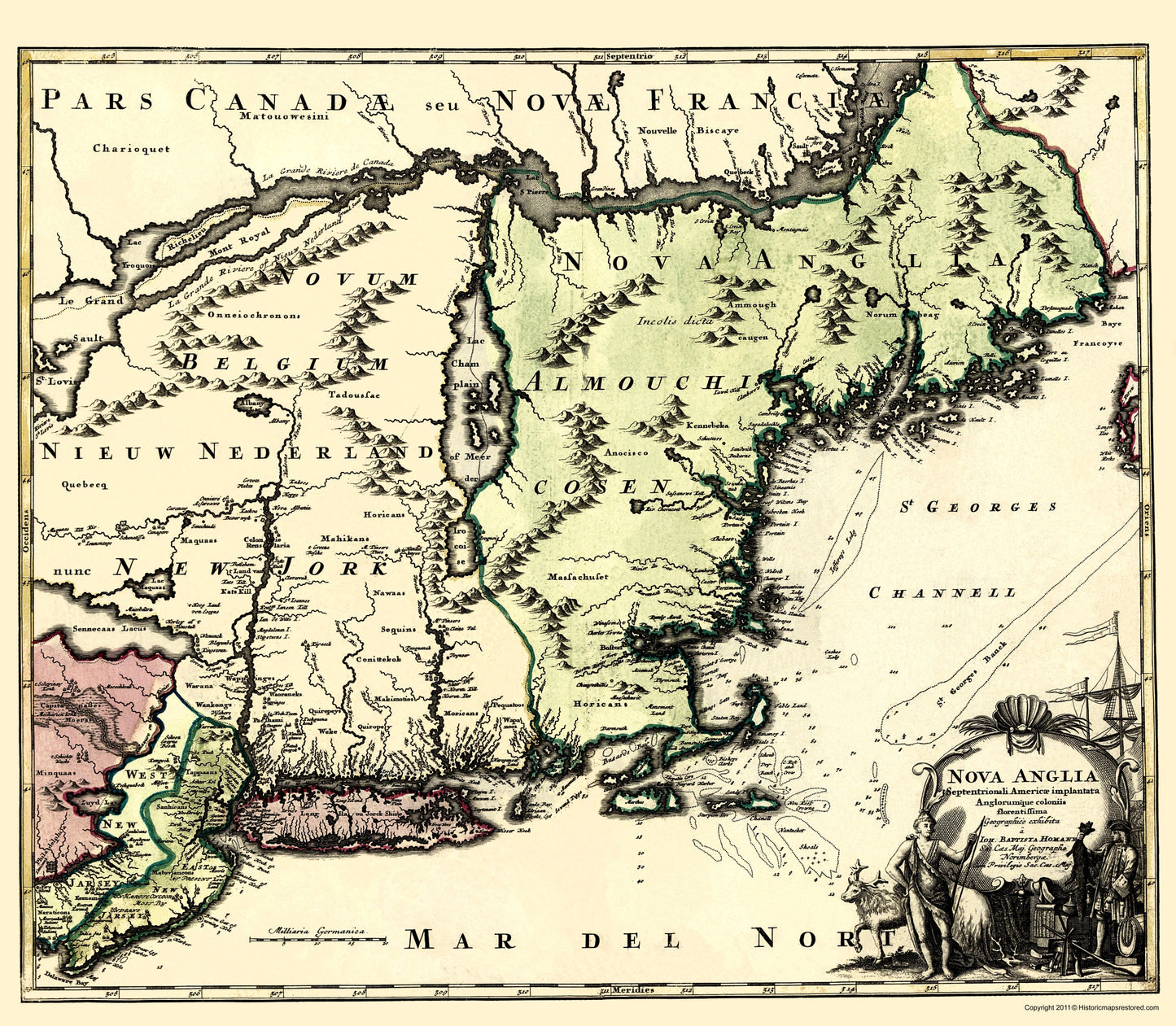 Historic Revolutionary War Map - New England North America - Homann 1780 - 23 x 32.26 - Vintage Wall Art