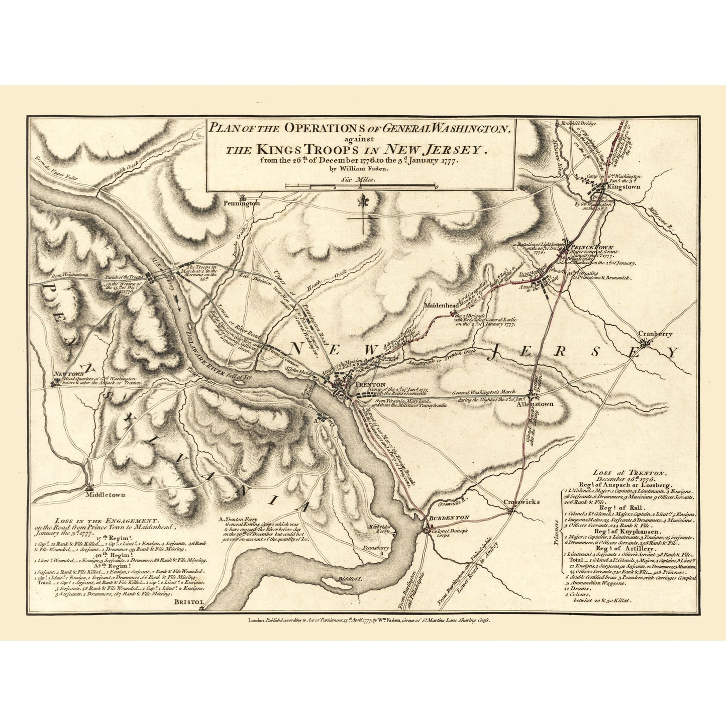 Historic Revolutionary War Map - New Jersey General Washington Operations - Faden 1777 - 30.06 x 23 - Vintage Wall Art