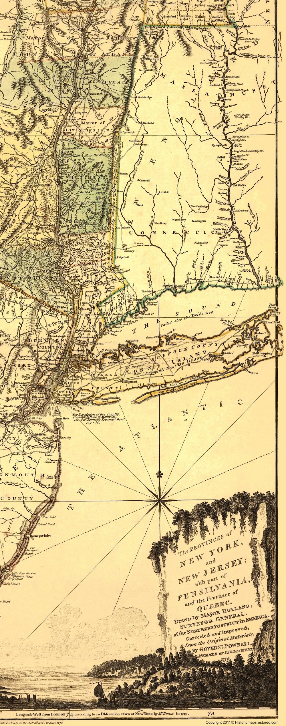 Historic Revolutionary War Map - New York New Jersey Provinces - Pownall 1776 - 23 x 58.40 - Vintage Wall Art