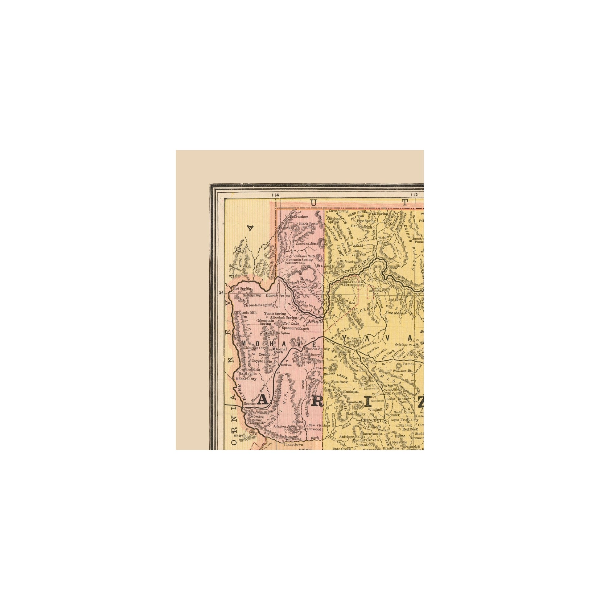 Old State Maps - Arizona - Cram's Atlas 1888 - This is an exquisite full-color Reproduction printed on high-quality gloss paper, art paper or canvas.