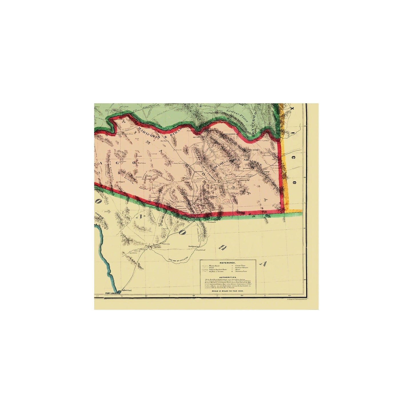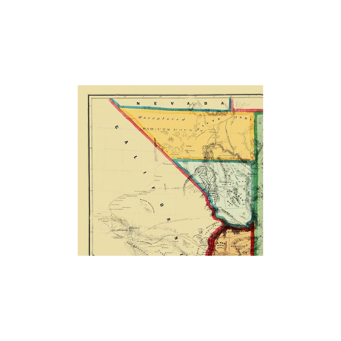 Old State Map - Arizona Territory - Gird 1865 - This is an exquisite full-color Reproduction printed on high-quality gloss paper, art paper or canvas.