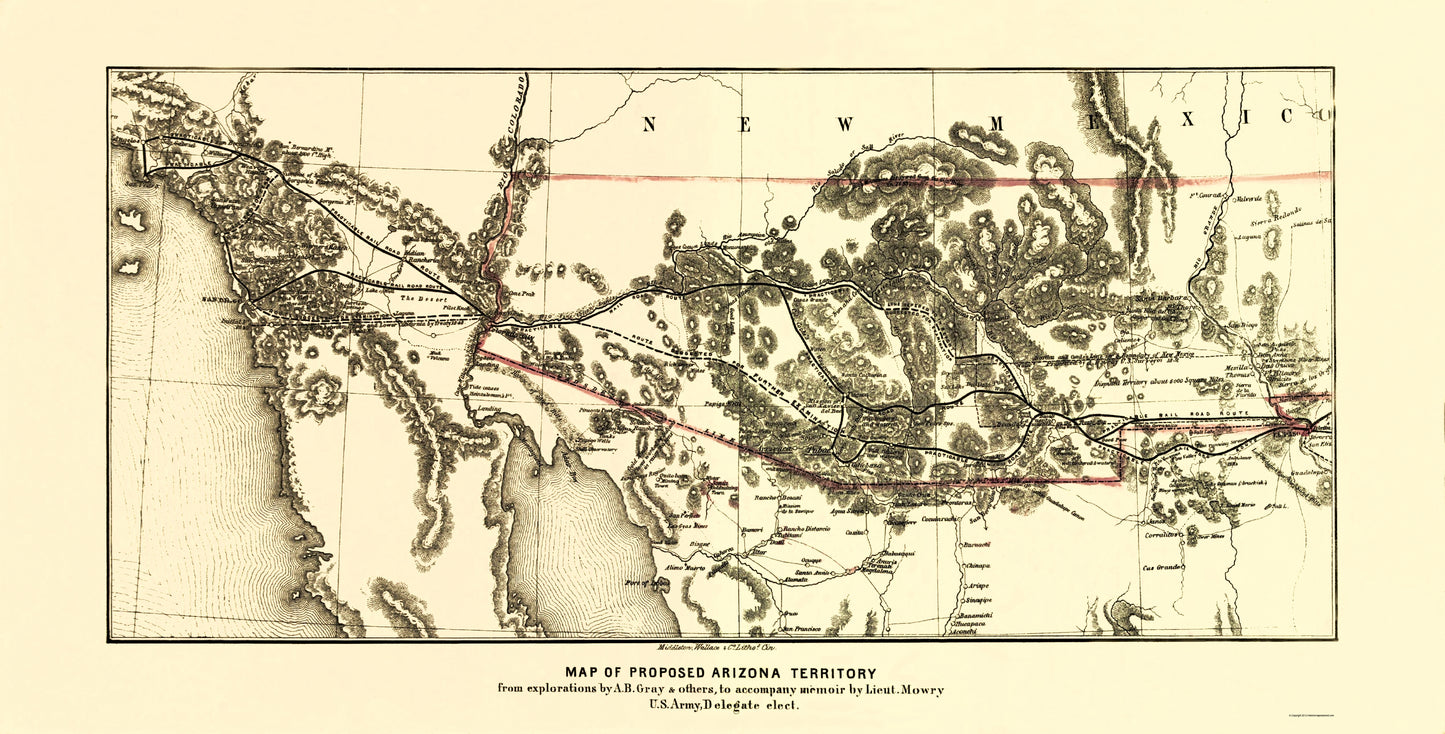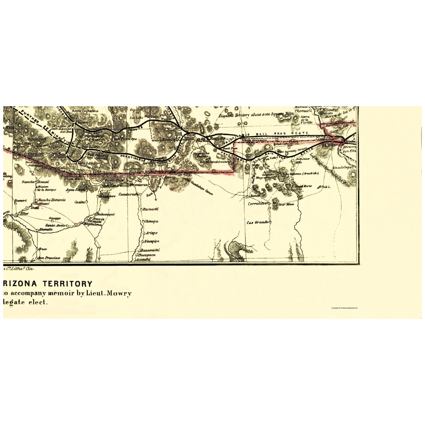 Old State Map - Arizona Territory - Wallace 1857 - This is an exquisite full-color Reproduction printed on high-quality gloss paper, art paper or canvas.