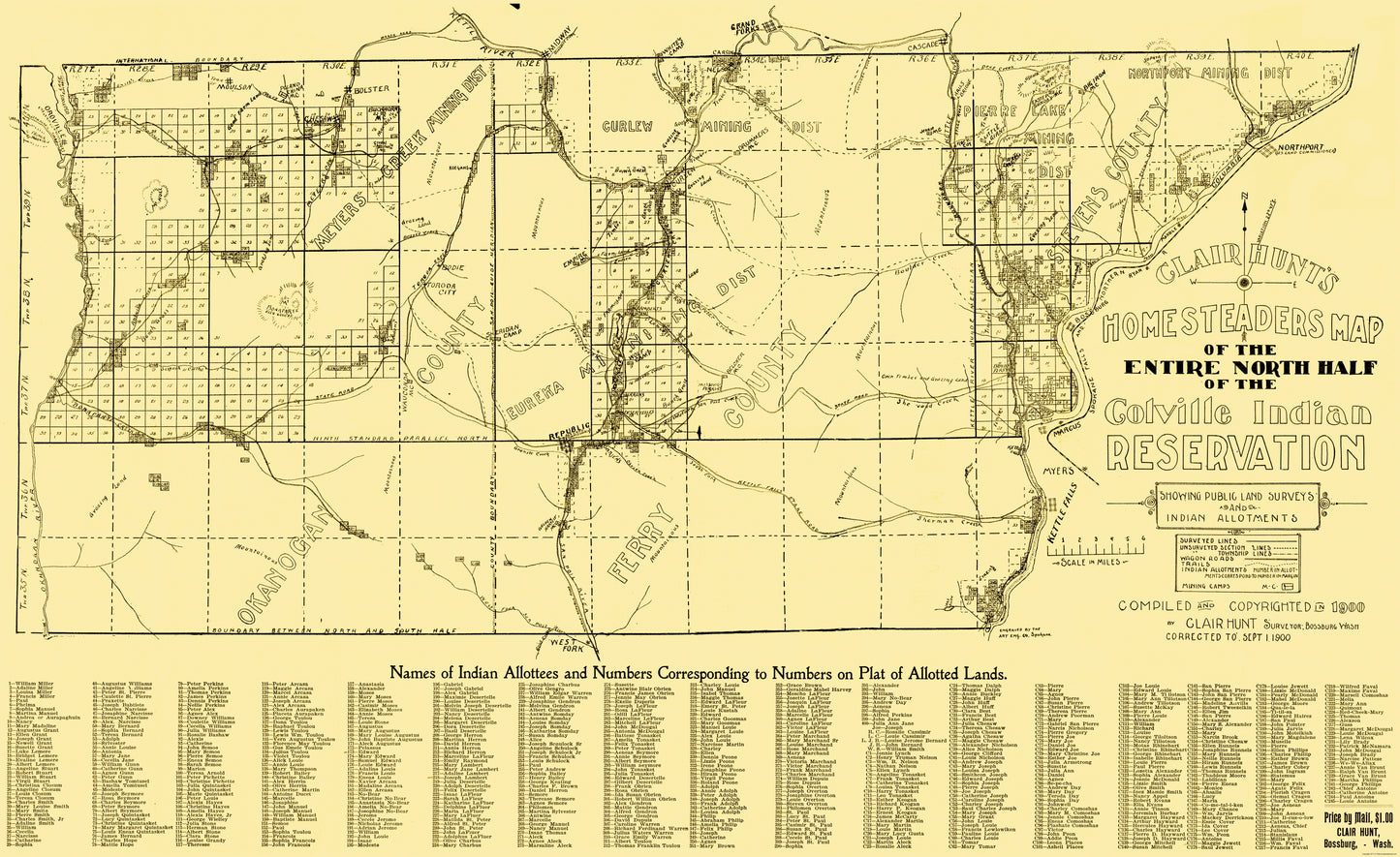 Old State Map - Colville Indian Reservation Northern Landowners 1900 - This is an exquisite full-color Reproduction printed on high-quality gloss paper, art paper or canvas.