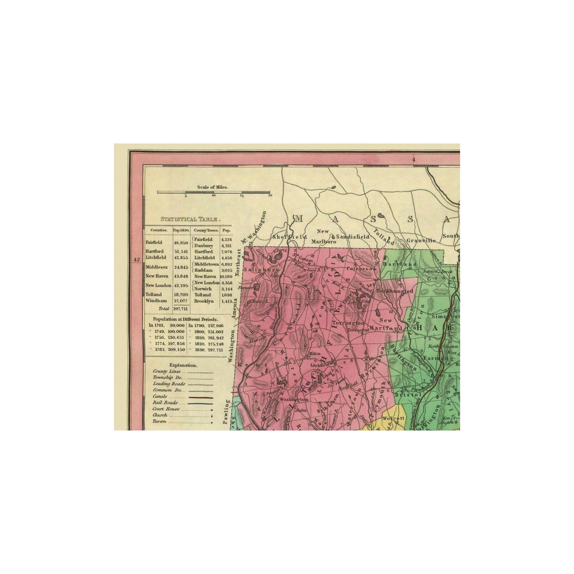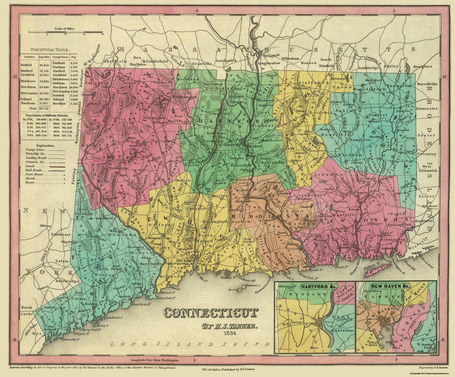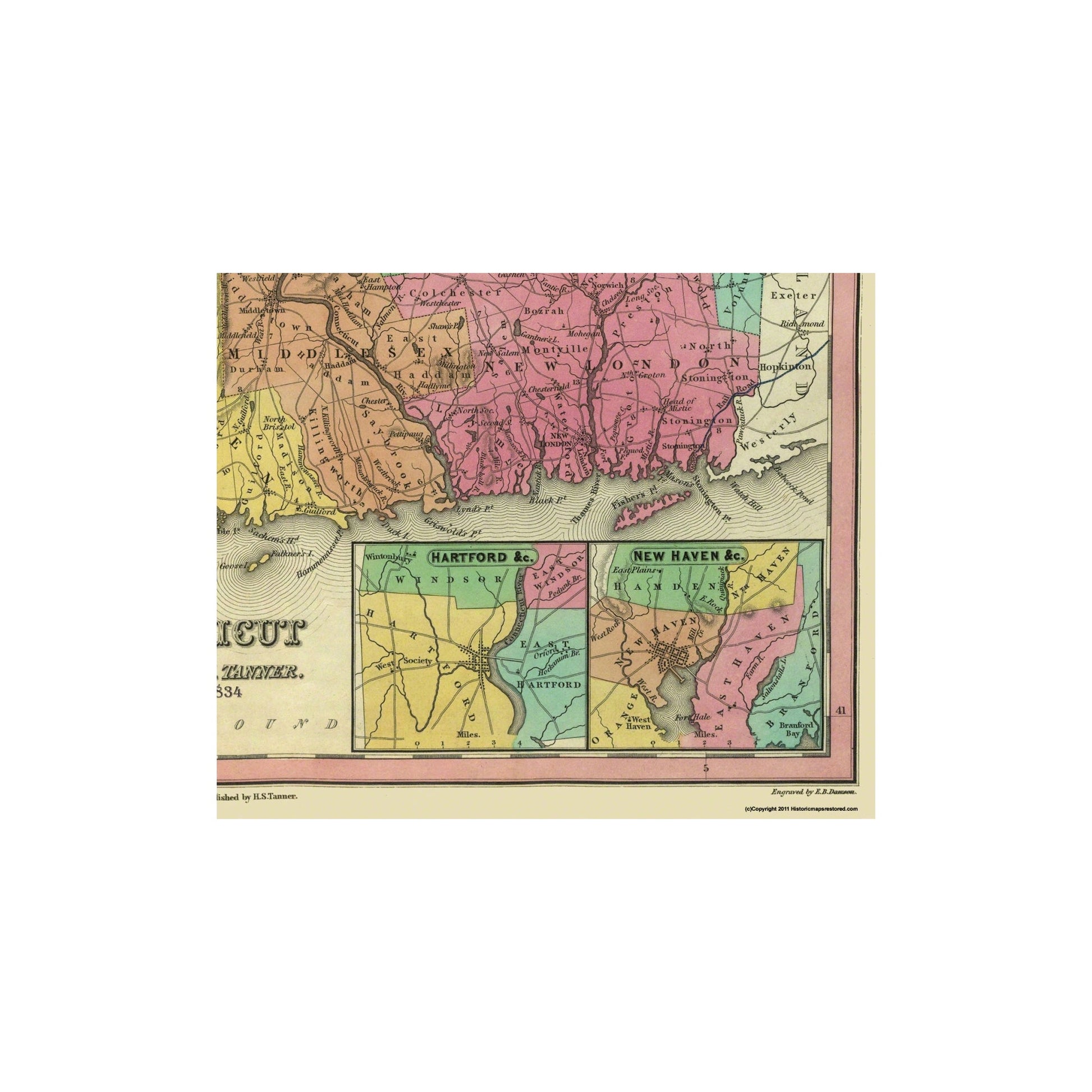 Historic State Map - Connecticut - Tanner 1834 - 27.75 x 23 - Vintage Wall Art
