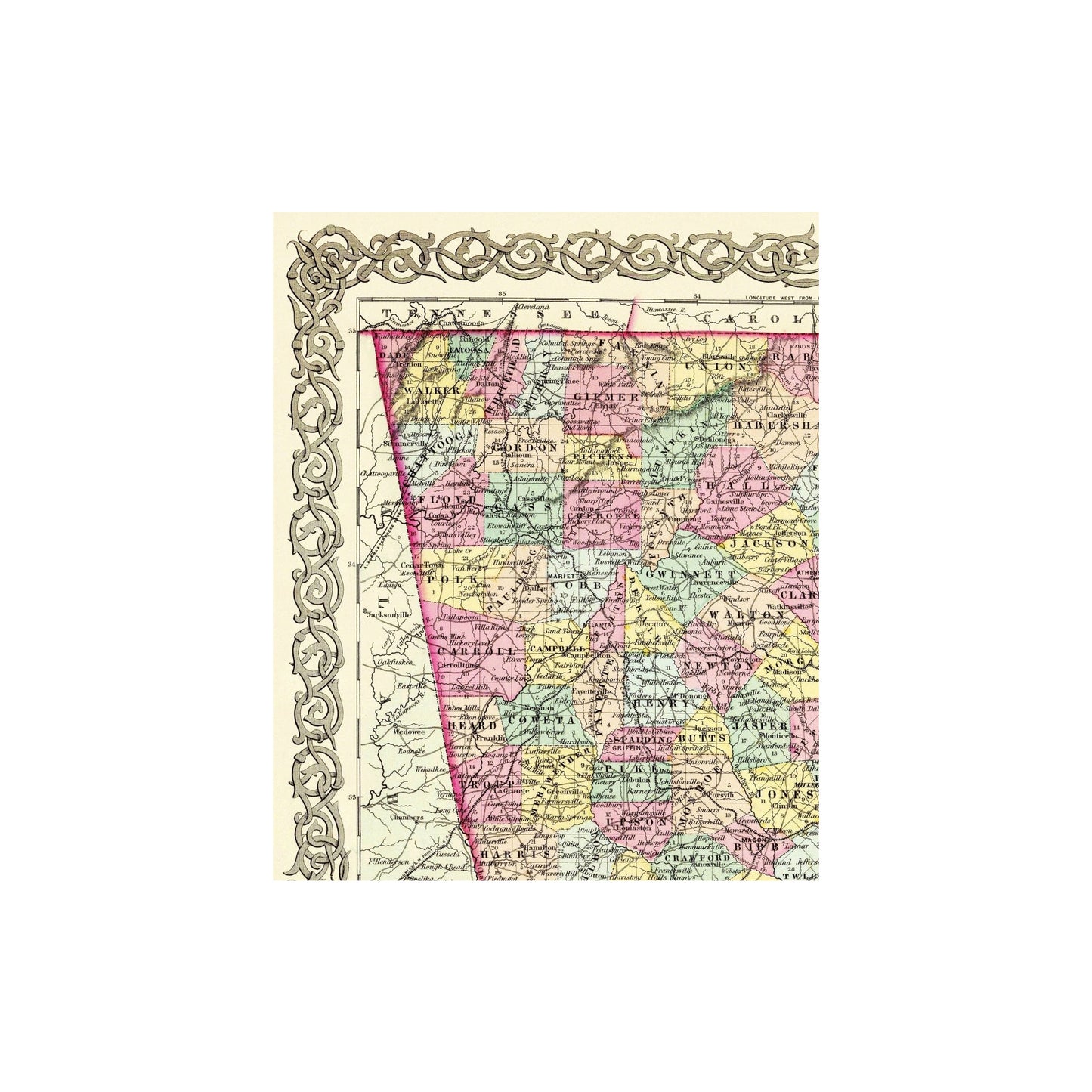 Old State Map - Georgia - Colton 1855 - This is an exquisite full-color Reproduction printed on high-quality gloss paper, art paper or canvas.
