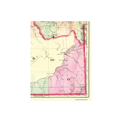 Old State Map - Idaho - 1874 - This is an exquisite full-color Reproduction printed on high-quality gloss paper, art paper or canvas.
