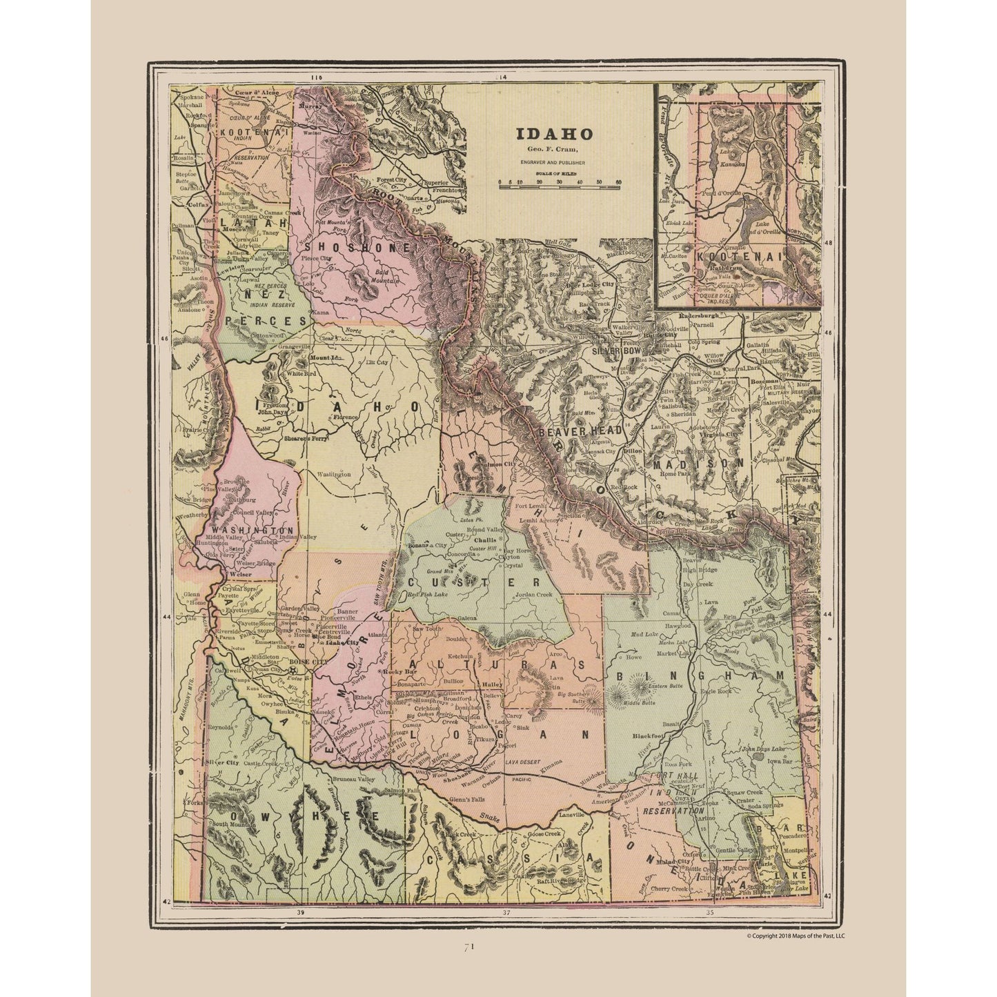 Old State Maps - Idaho - Cram 1892 - This is an exquisite full-color Reproduction printed on high-quality gloss paper, art paper or canvas.