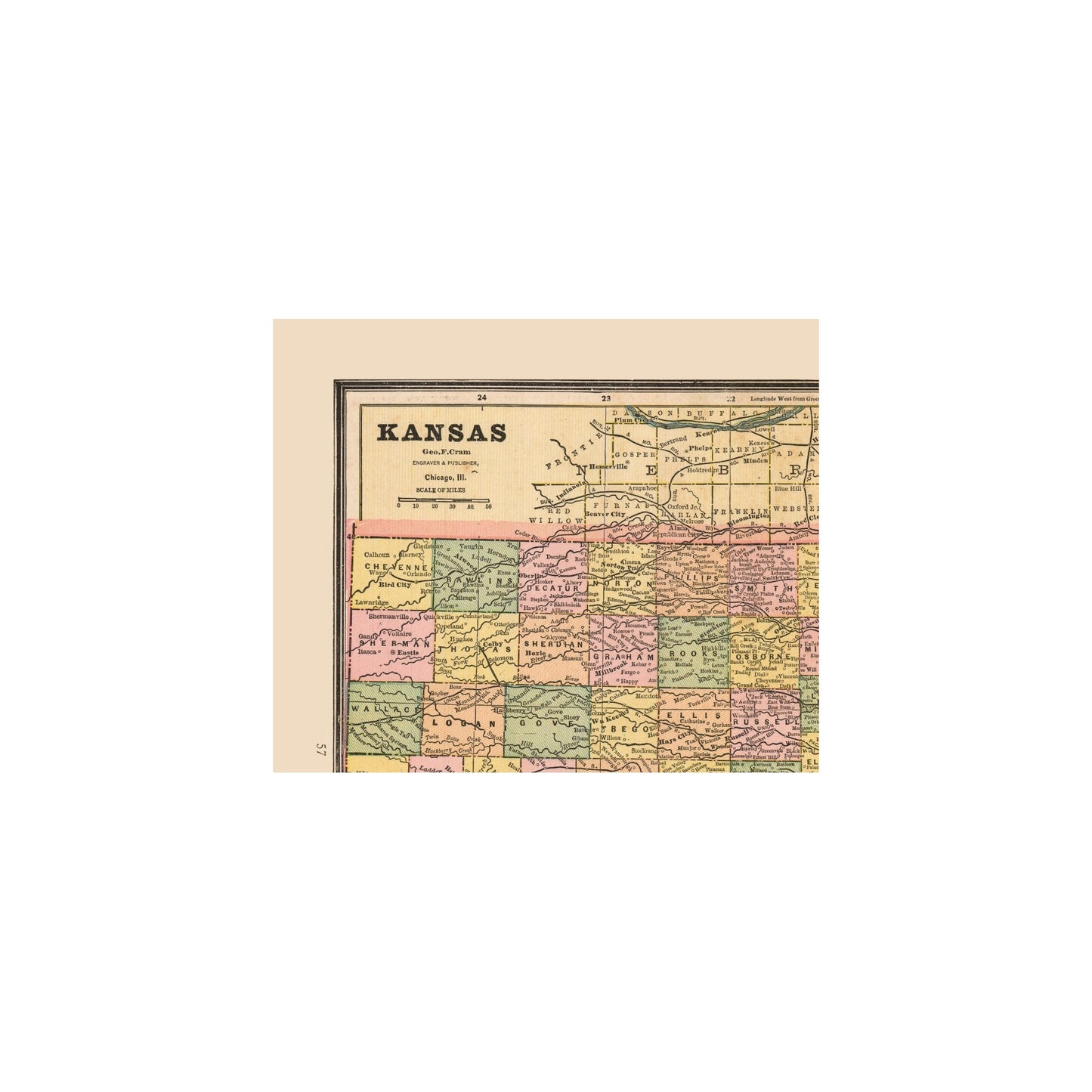 Old State Maps - Kansas, United States - Cram's Atlas 1888 - This is an exquisite full-color Reproduction printed on high-quality gloss paper, art paper or canvas.
