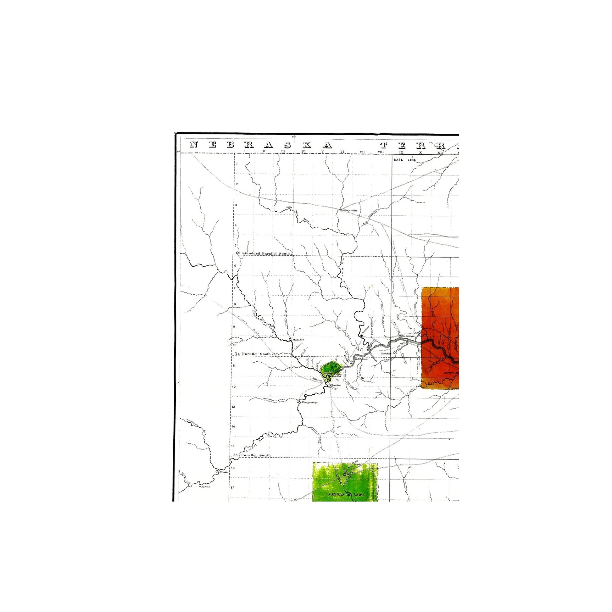 Sites and Townships Specific To This Map Are: Highland, Whitehead, Marysville, Madison, Easton, Brownville, Council City, Boonville, Hampden, and others.
