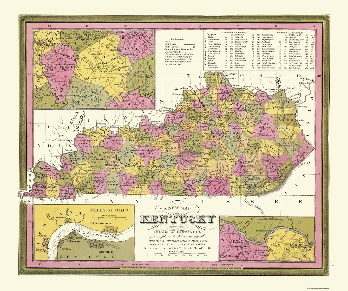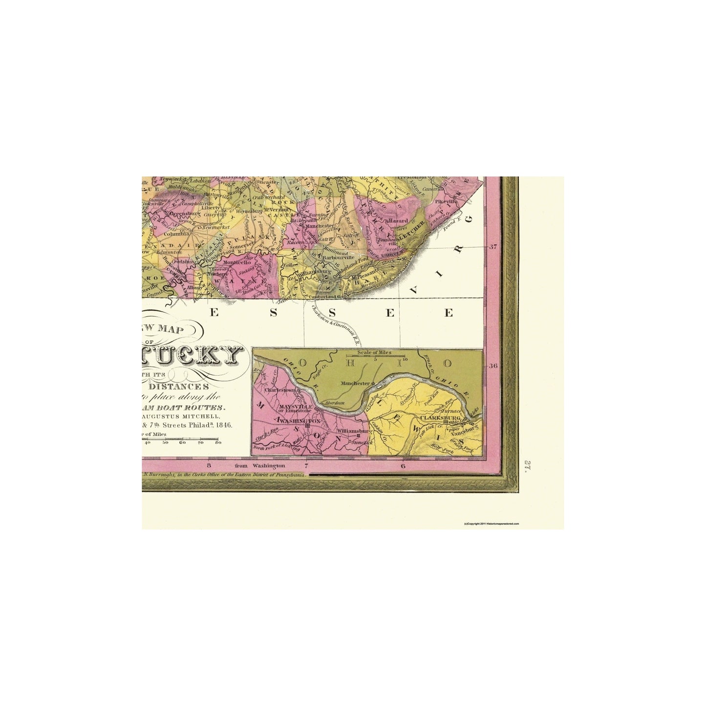 Old State Map - Kentucky - Mitchell 1846 - This is an exquisite full-color Reproduction printed on high-quality gloss paper, art paper or canvas.