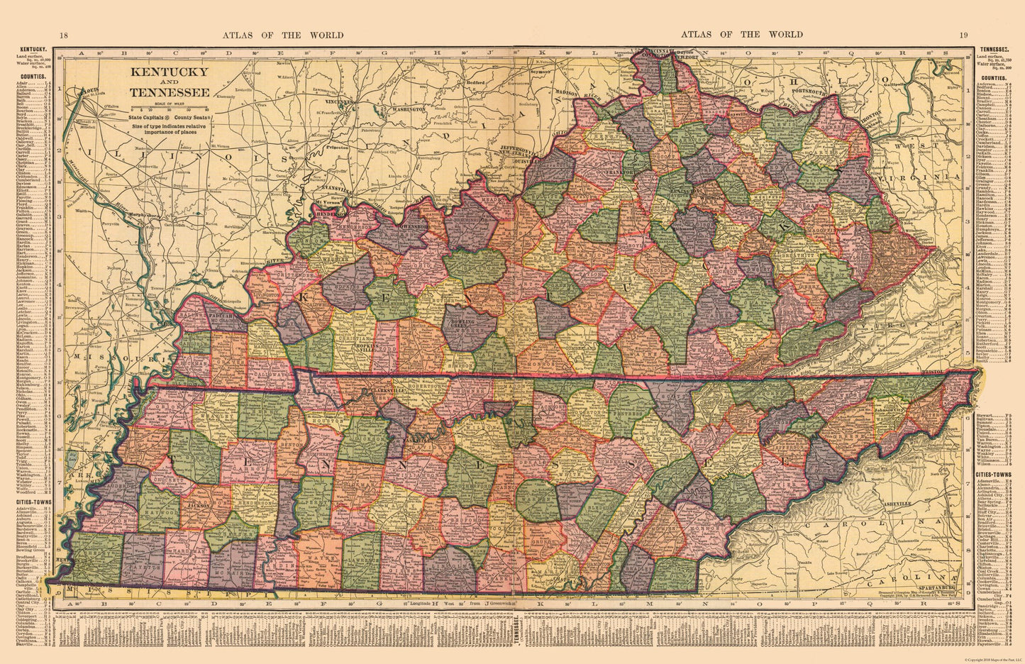 Old State Maps - Kentucky, Tennessee - This is an exquisite full-color Reproduction printed on high-quality gloss paper, art paper or canvas.