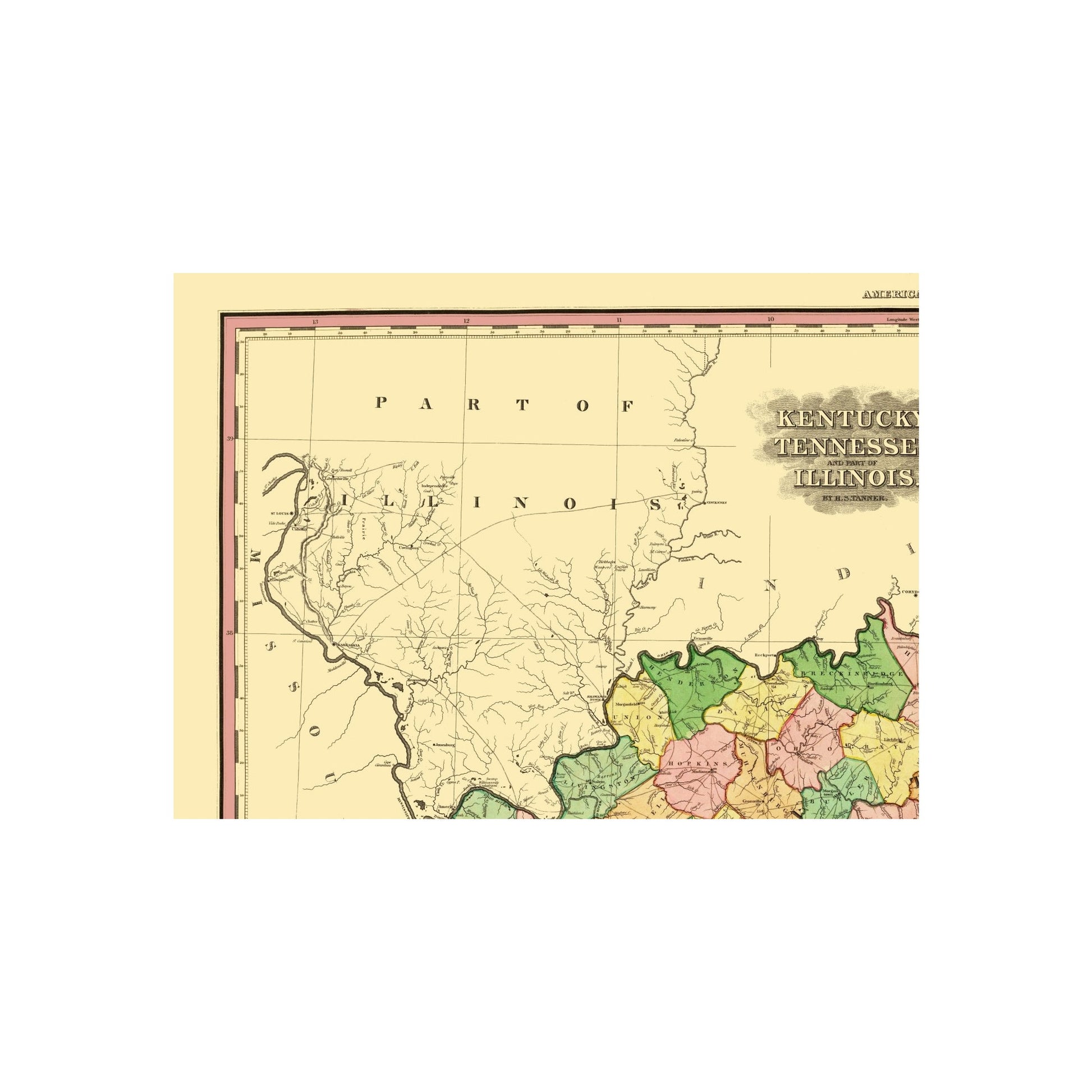 Old State Map - Kentucky, Tennessee, Part of Illinois - Tanner 1823 - This is an exquisite full-color Reproduction printed on high-quality gloss paper, art paper or canvas.