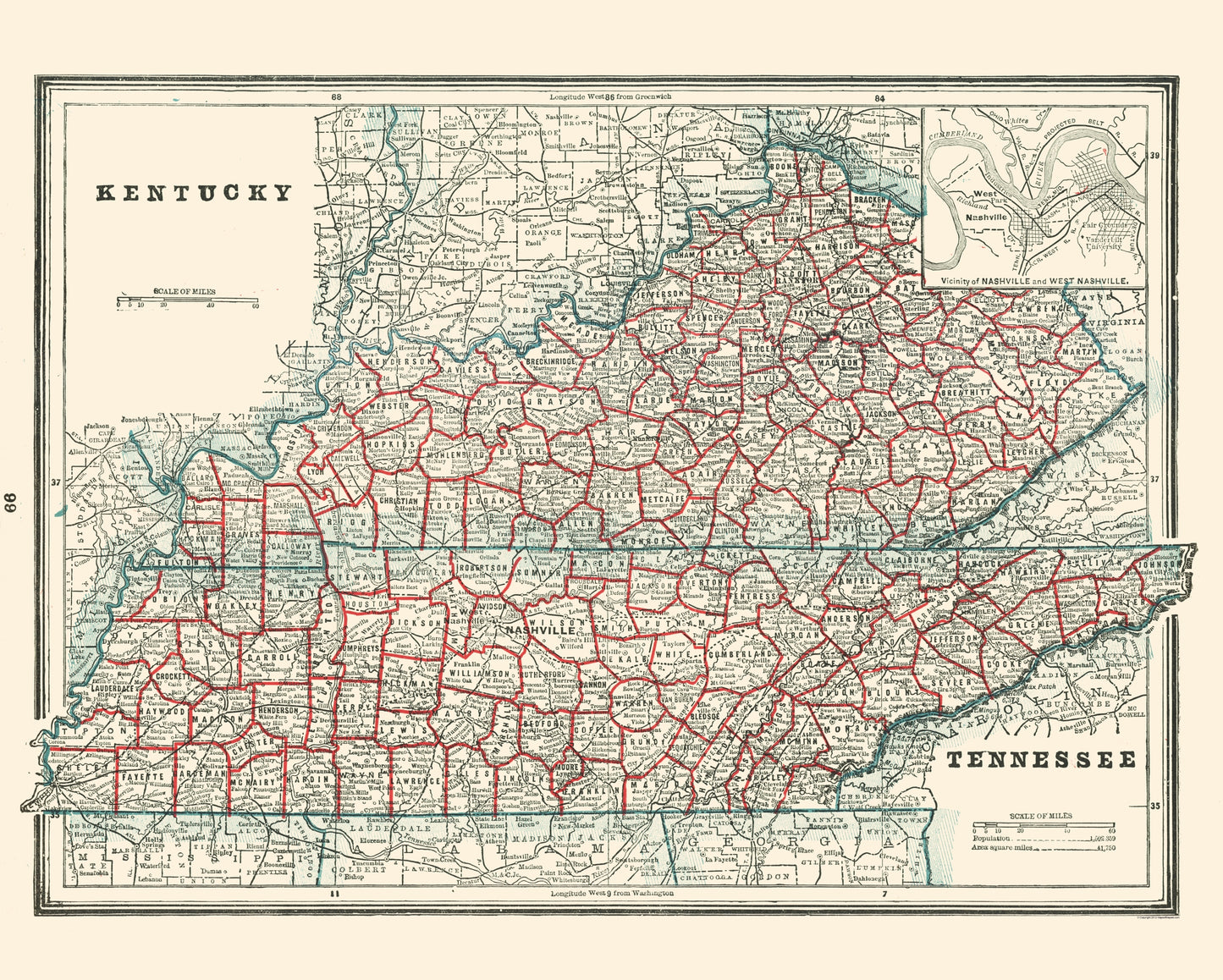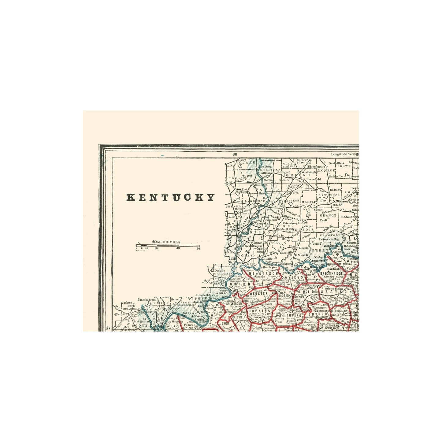 Historic State Map - Kentucky Tennessee - Rathbun 1893 - 23 x 28.70 - Vintage Wall Art