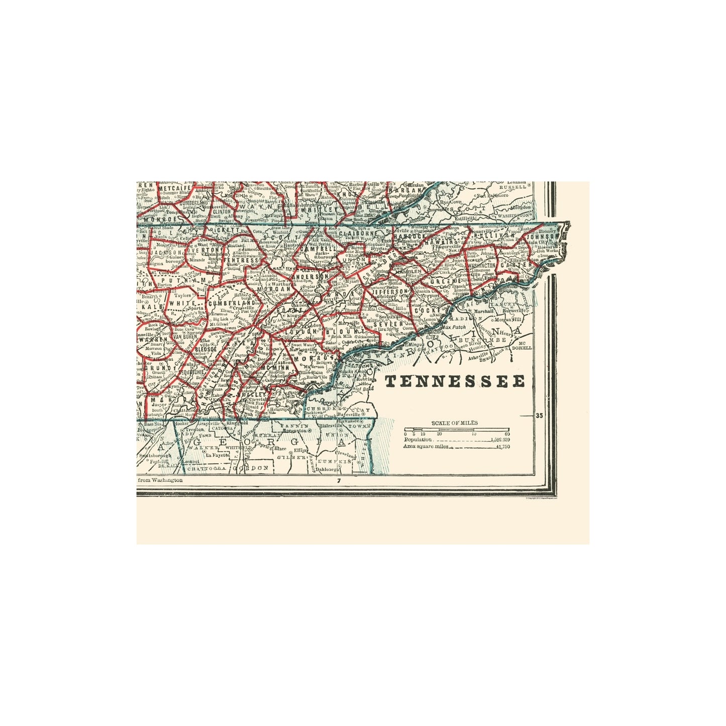 Old State Map - Kentucky, Tennessee - Rathbun 1893 - This is an exquisite full-color Reproduction printed on high-quality gloss paper, art paper or canvas.