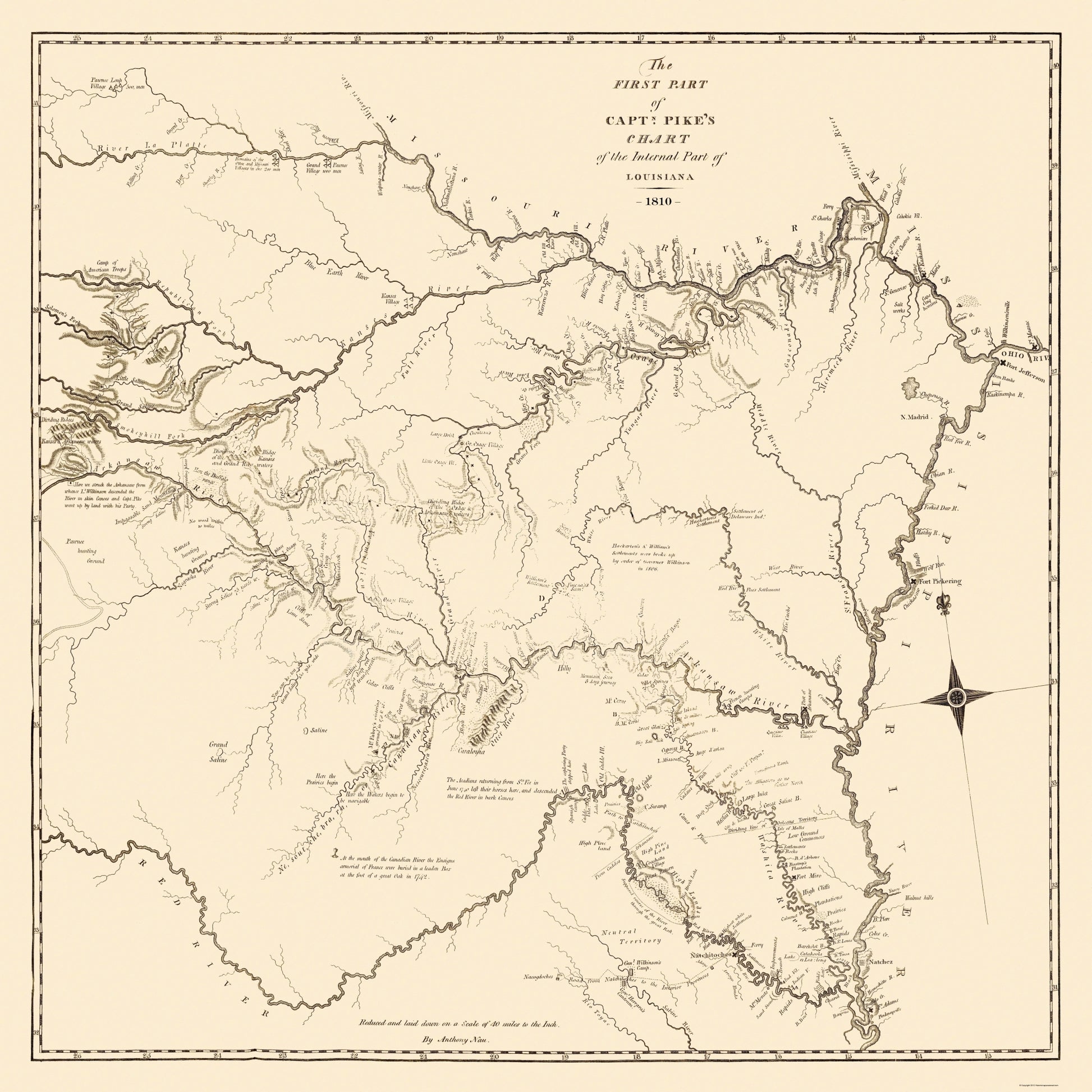 Old State Map - Louisiana Purchase, Capt Pikes Chart 1 - Nau 1810 - This is an exquisite full-color Reproduction printed on high-quality gloss paper, art paper or canvas.