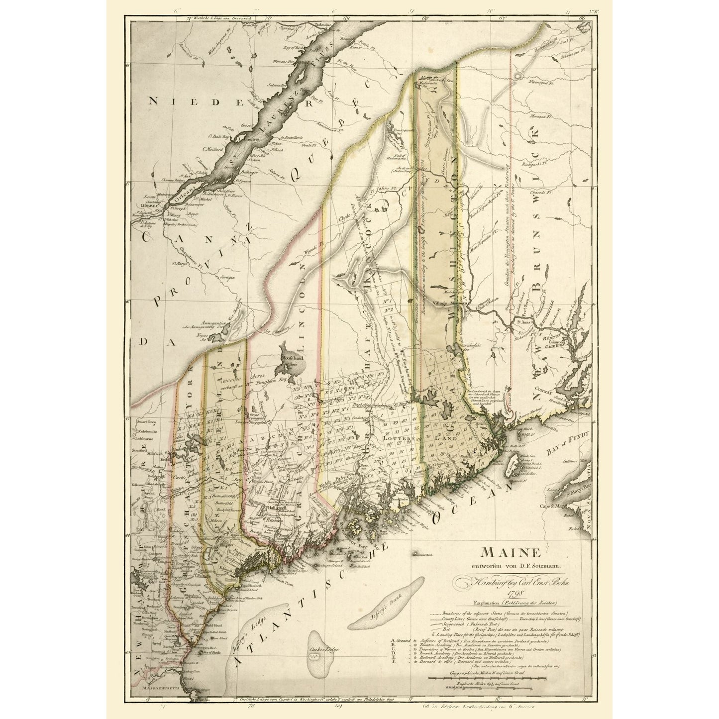Historic State Map - Maine - Bohn 1798 - 23 x 32.67 - Vintage Wall Art