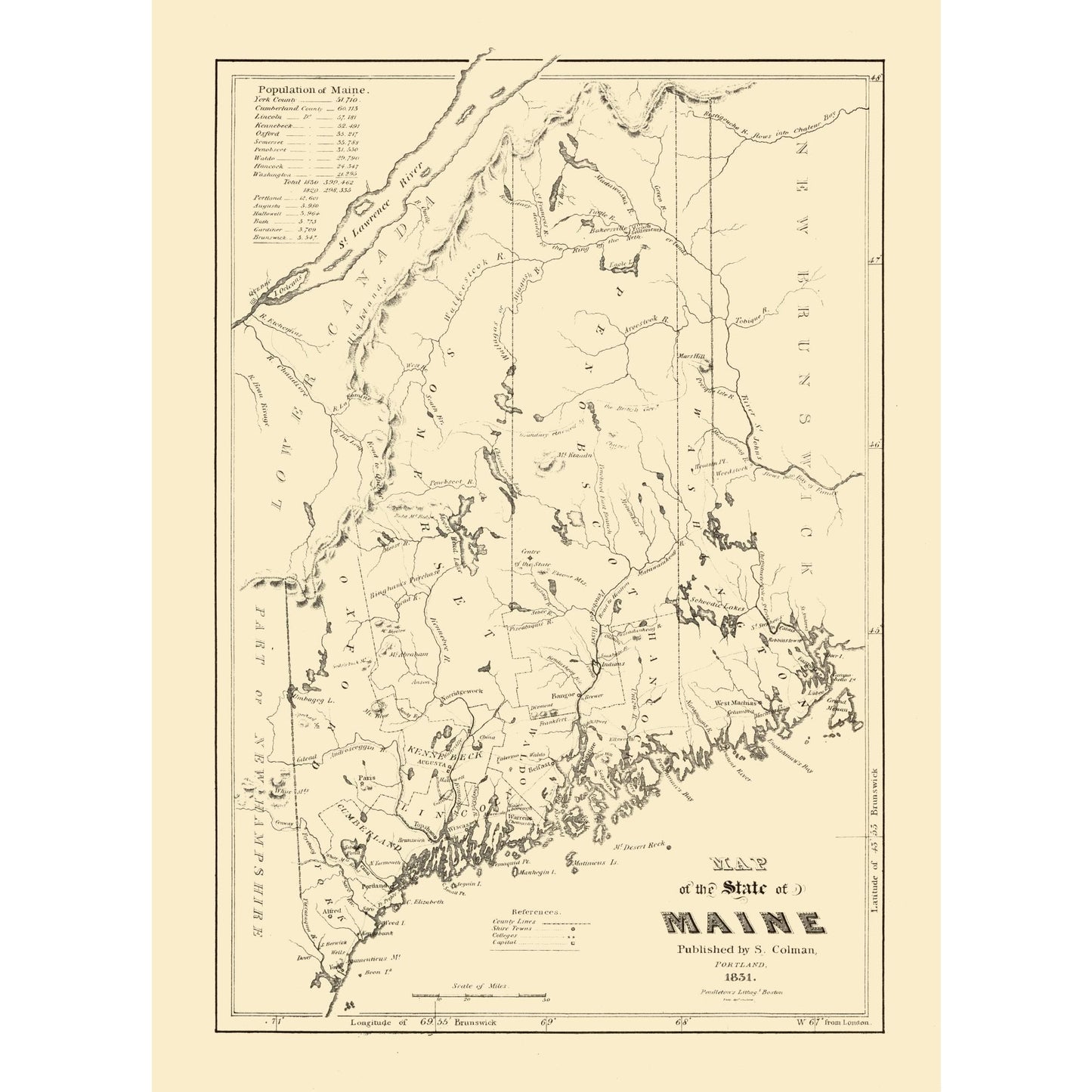 Old State Maps - Maine - Colman 1831 - This is an exquisite full-color Reproduction printed on high-quality gloss paper, art paper or canvas.