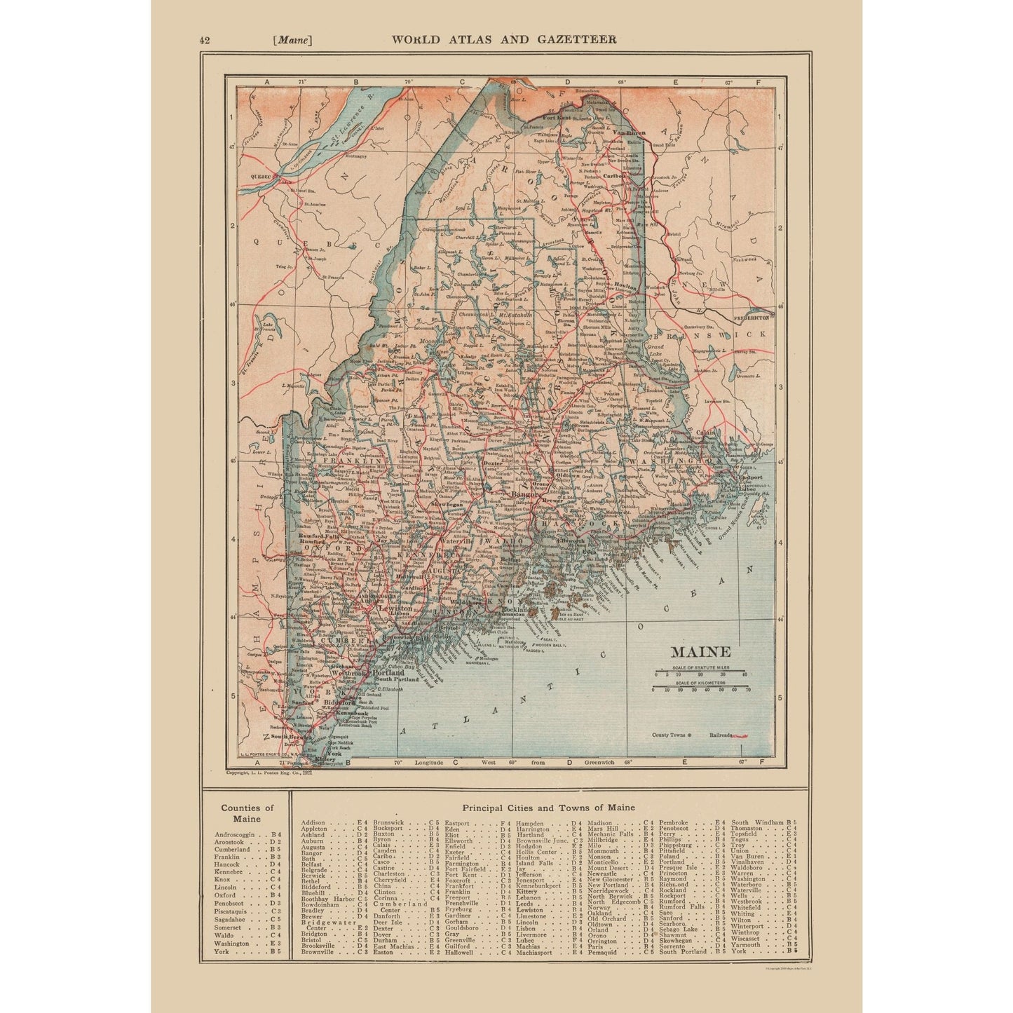 Old State Maps - Maine - Reynold 1921 - This is an exquisite full-color Reproduction printed on high-quality gloss paper, art paper or canvas.