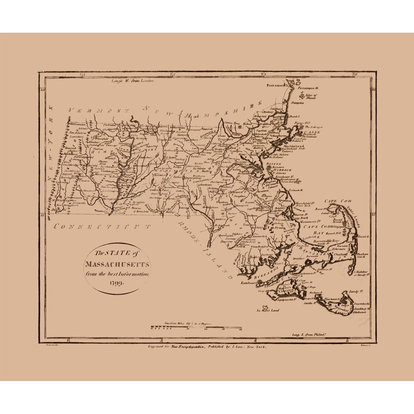 Old State Maps - Massachusetts - Low 1799 - This is an exquisite full-color Reproduction printed on high-quality gloss paper, art paper or canvas.
