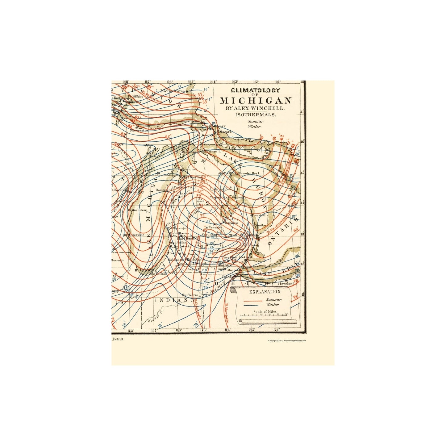 Old State Map - Michigan Climatology Summer to Winter 1873 - This is an exquisite full-color Reproduction printed on high-quality gloss paper, art paper or canvas.