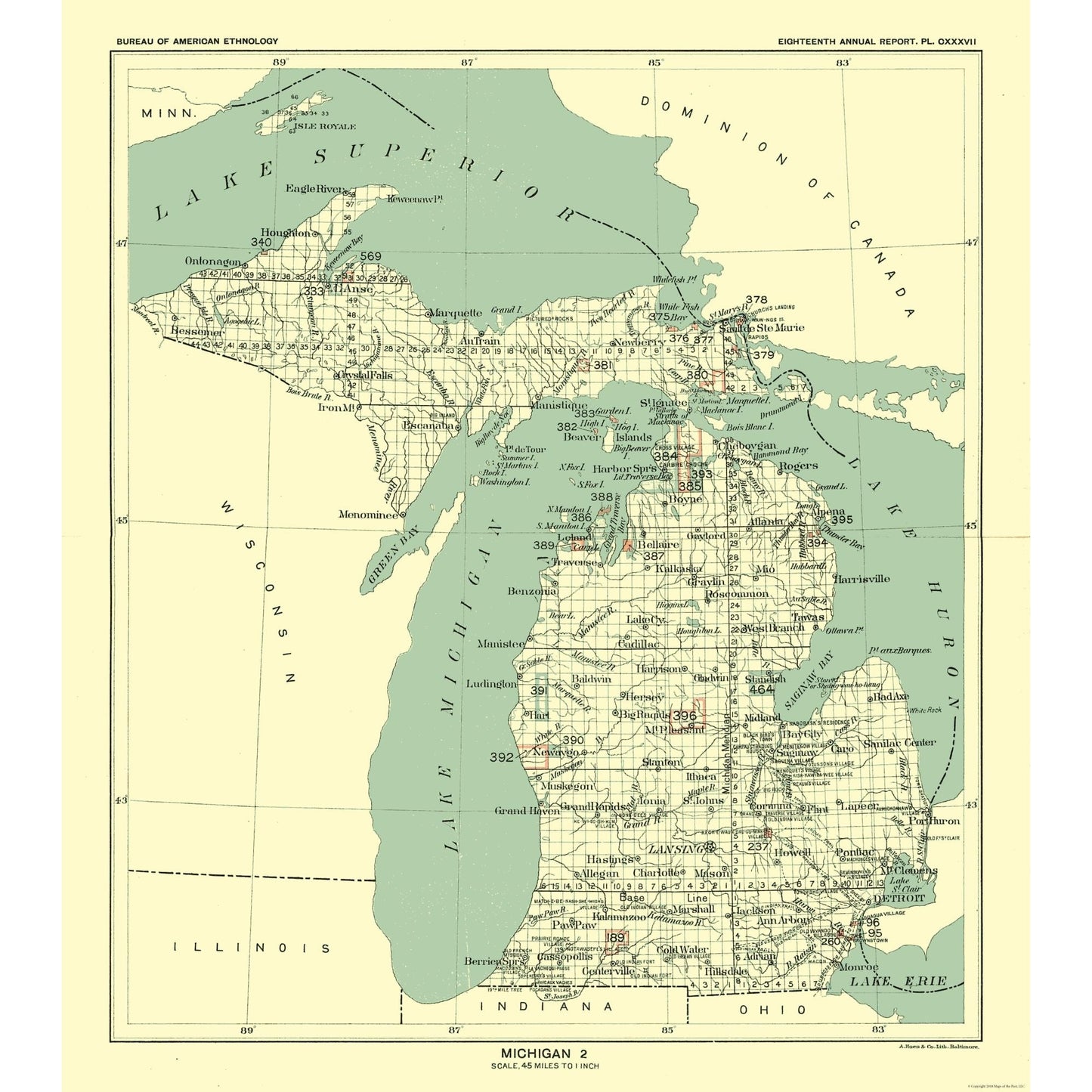 Historic State Map - Michigan - Hoen 1896 - 23 x 25.94 - Vintage Wall Art