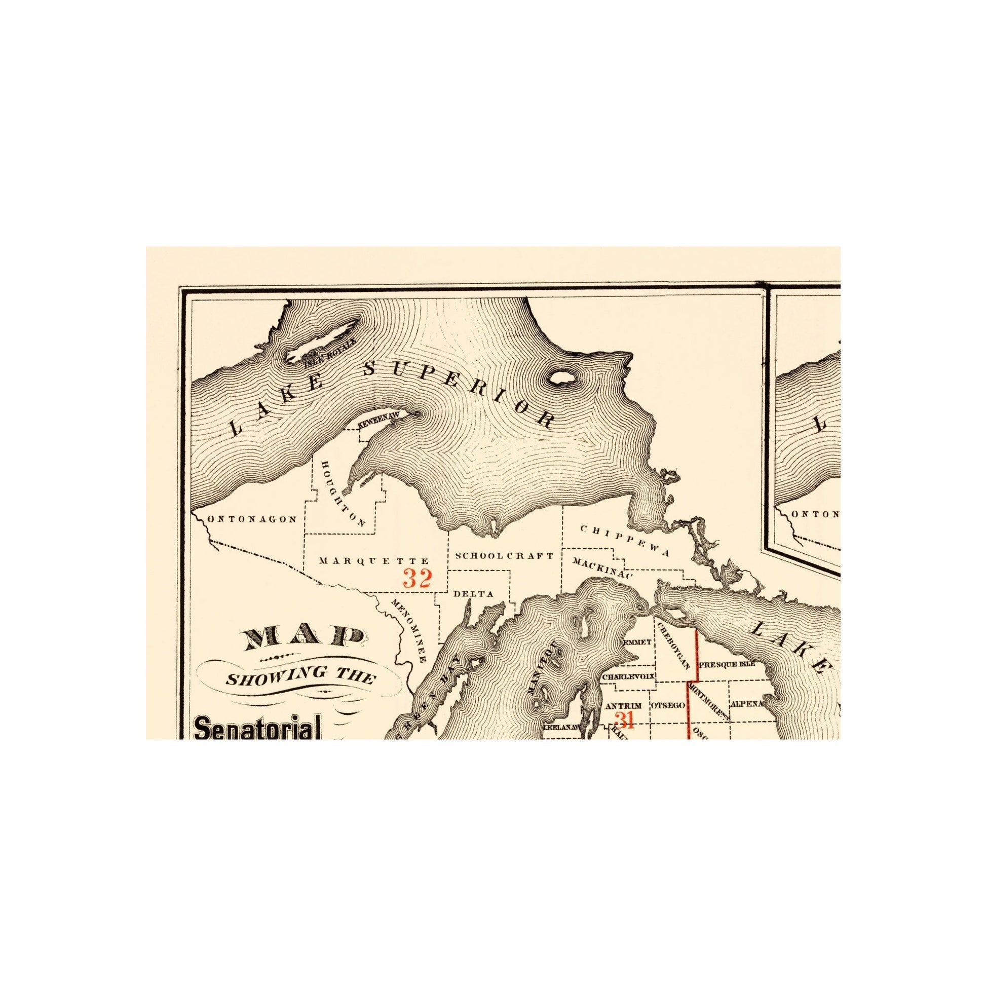 Old State Map - Michigan Senatorial, Representative Districts 1873 - This is an exquisite full-color Reproduction printed on high-quality gloss paper, art paper or canvas.