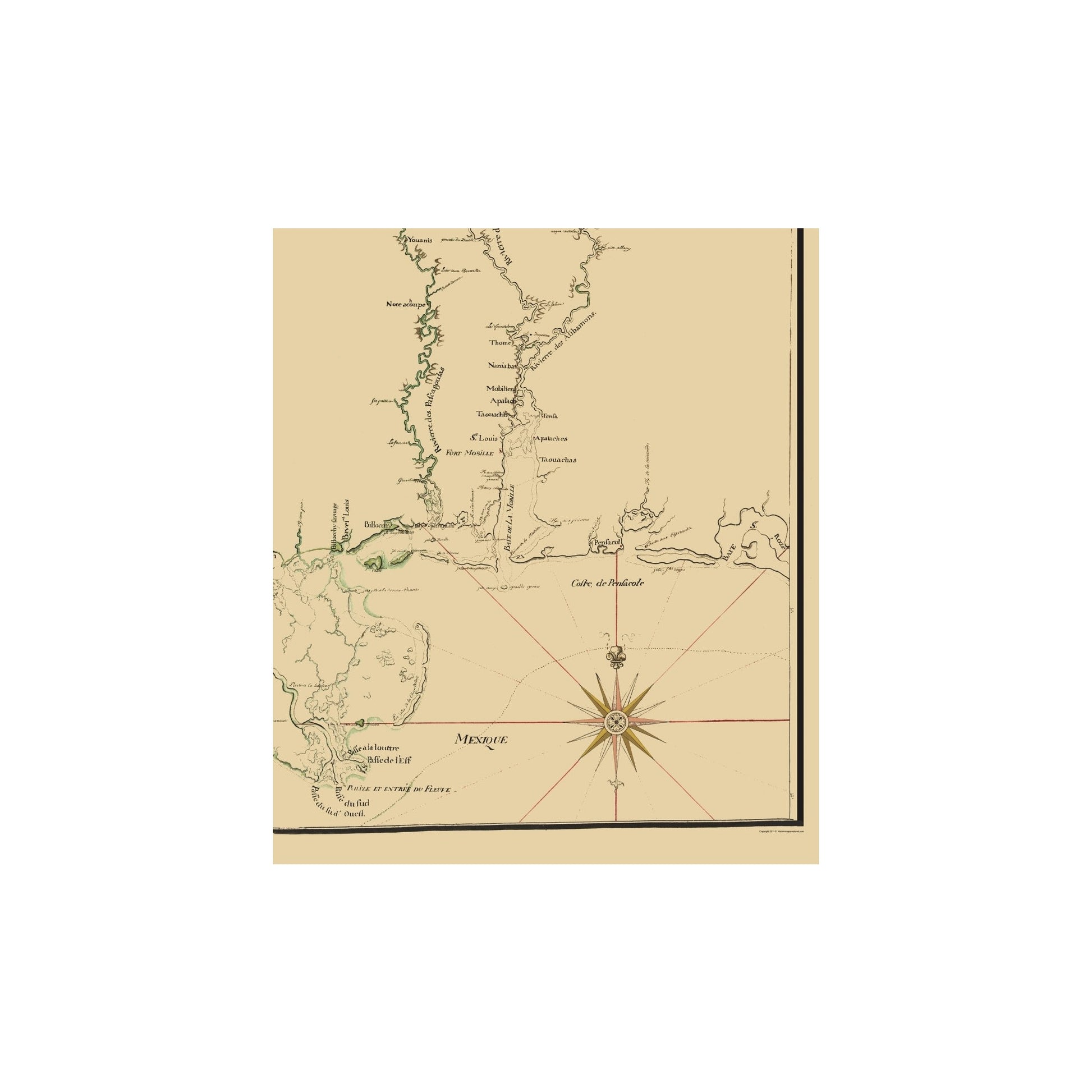 Old State Map - Mississippi to Ft Assumption and Florida 1743 - This is an exquisite full-color Reproduction printed on high-quality gloss paper, art paper or canvas.