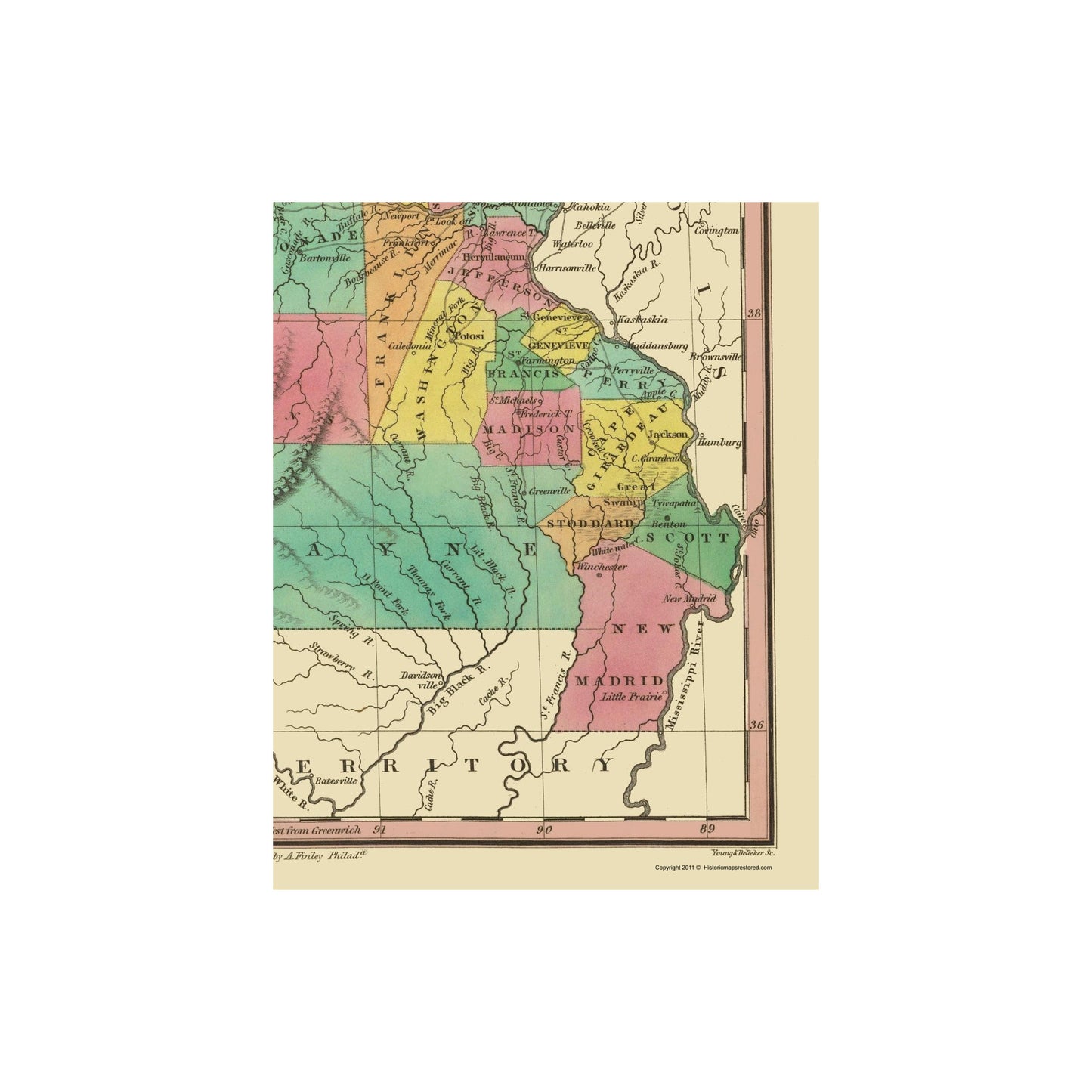 Old State Map - Missouri - Finley 1831 - This is an exquisite full-color Reproduction printed on high-quality gloss paper, art paper or canvas.