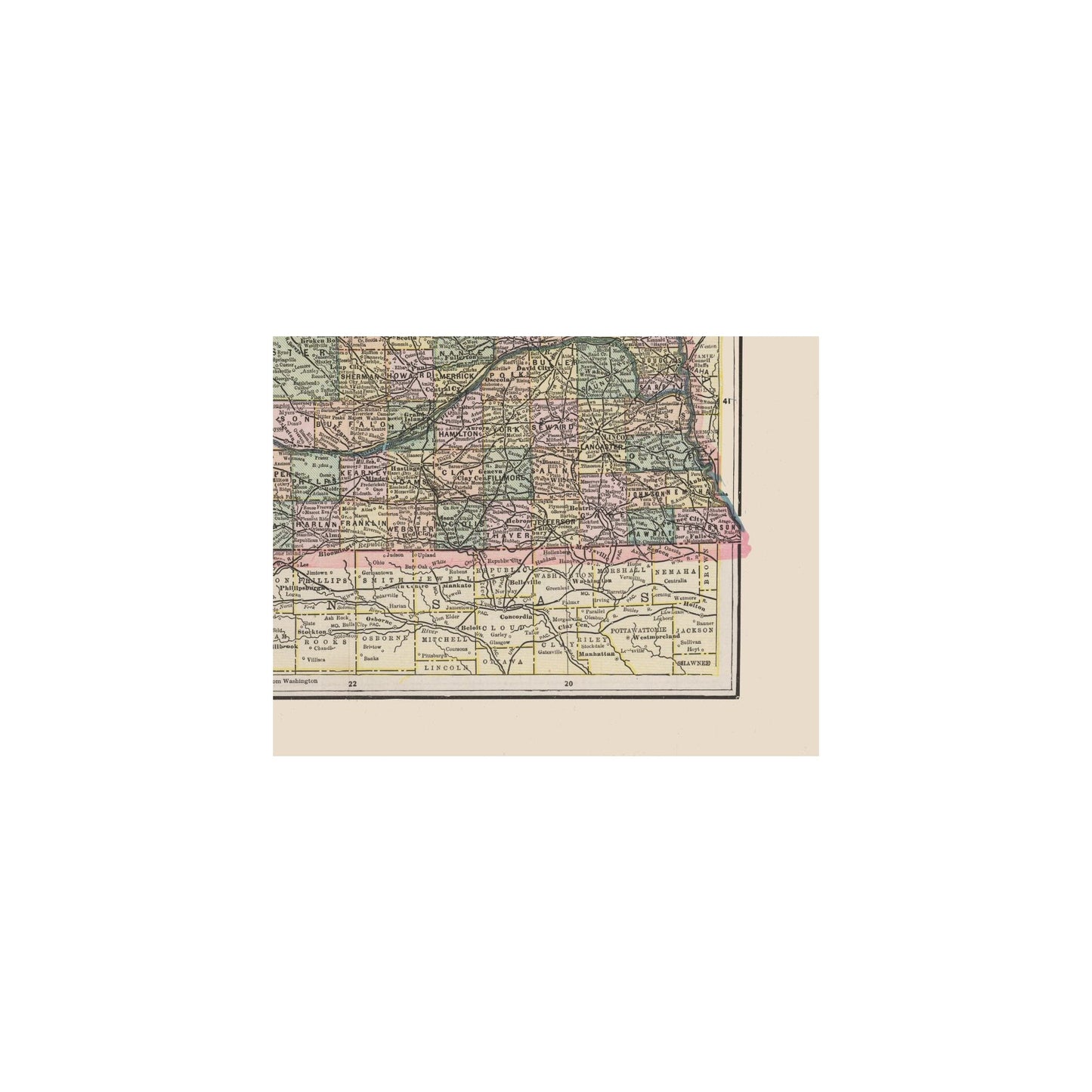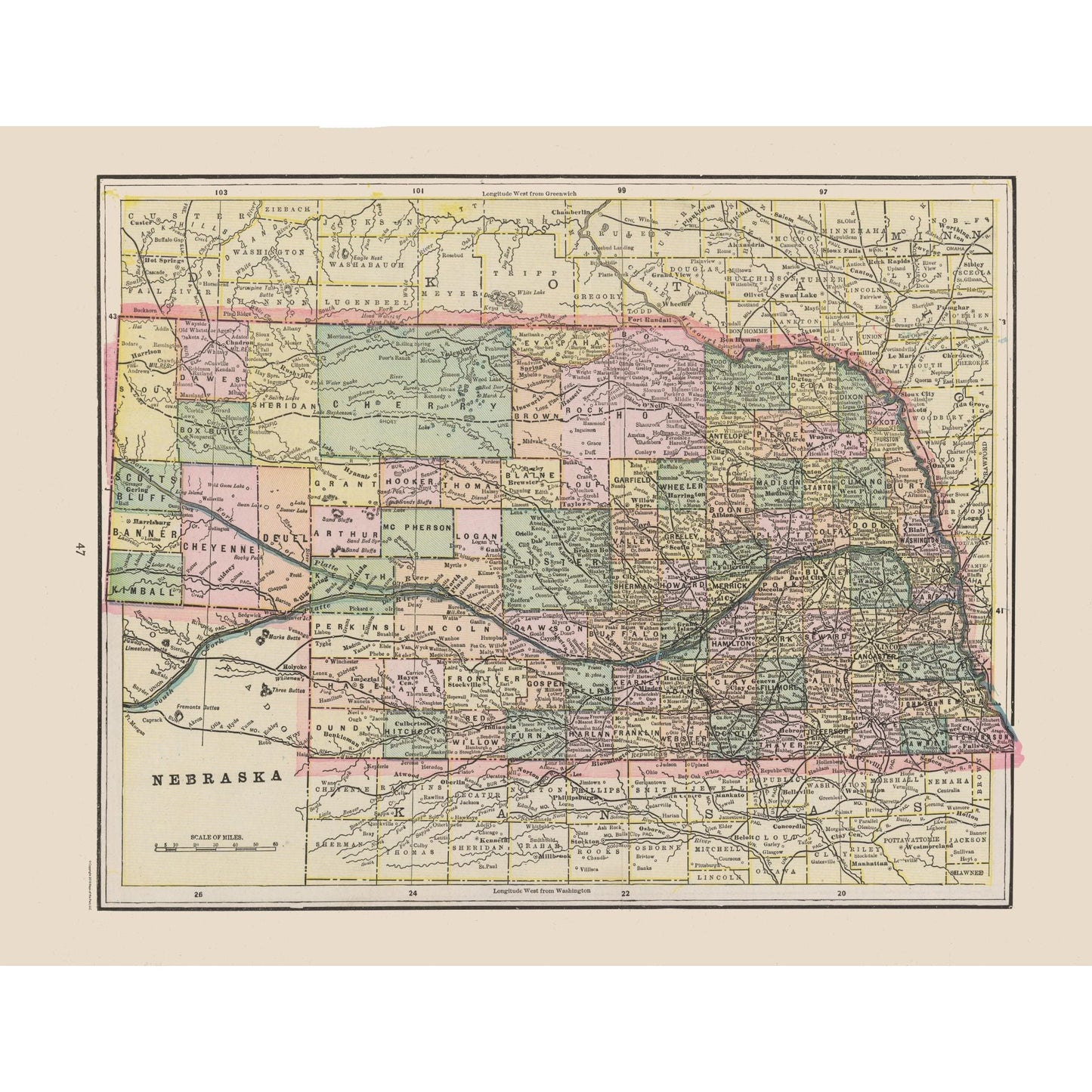 Old State Maps - Nebraska - Cram 1892 - This is an exquisite full-color Reproduction printed on high-quality gloss paper, art paper or canvas.