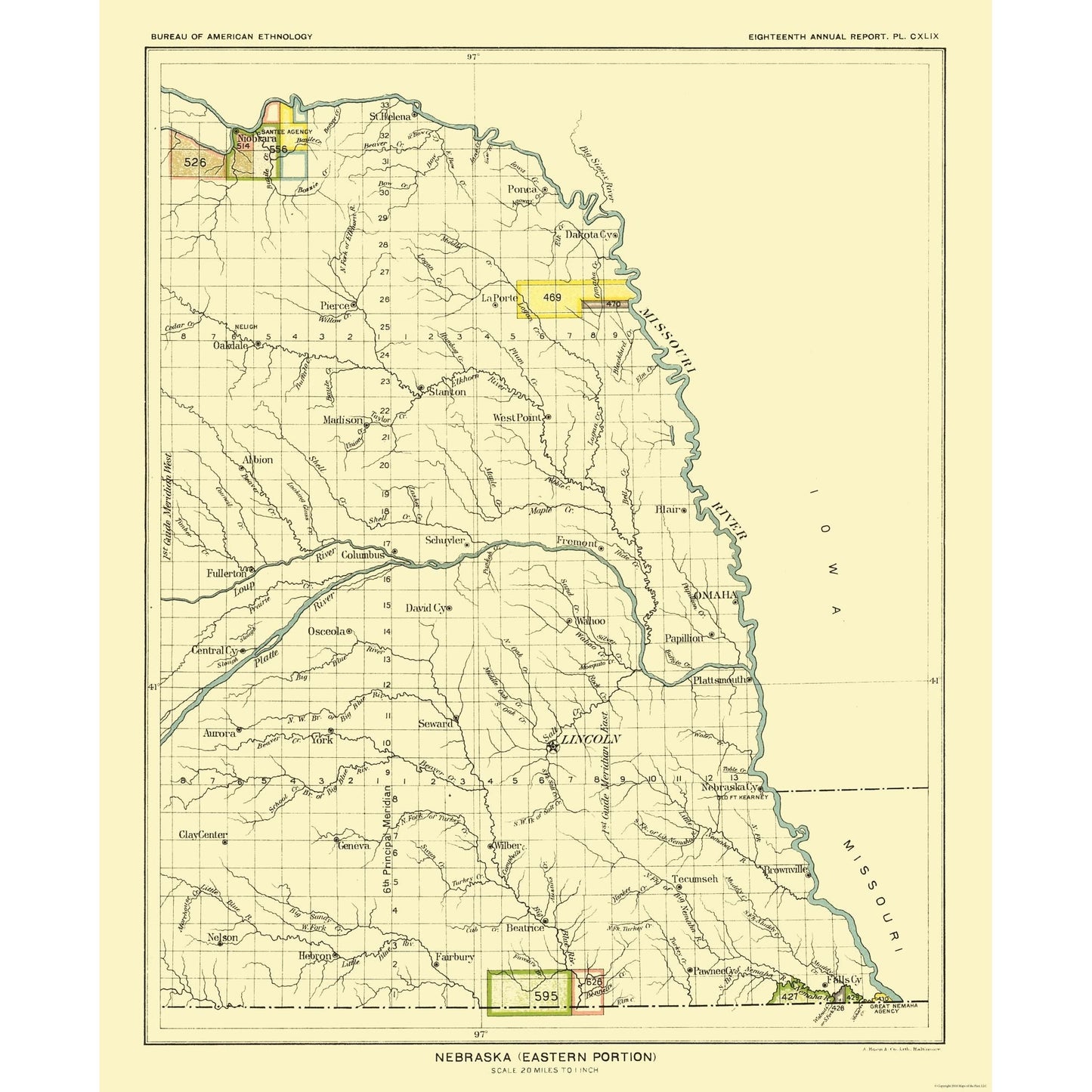 Historic State Map - Nebraska Eastern - Hoen 1896 - 23 x 28.14 - Vintage Wall Art