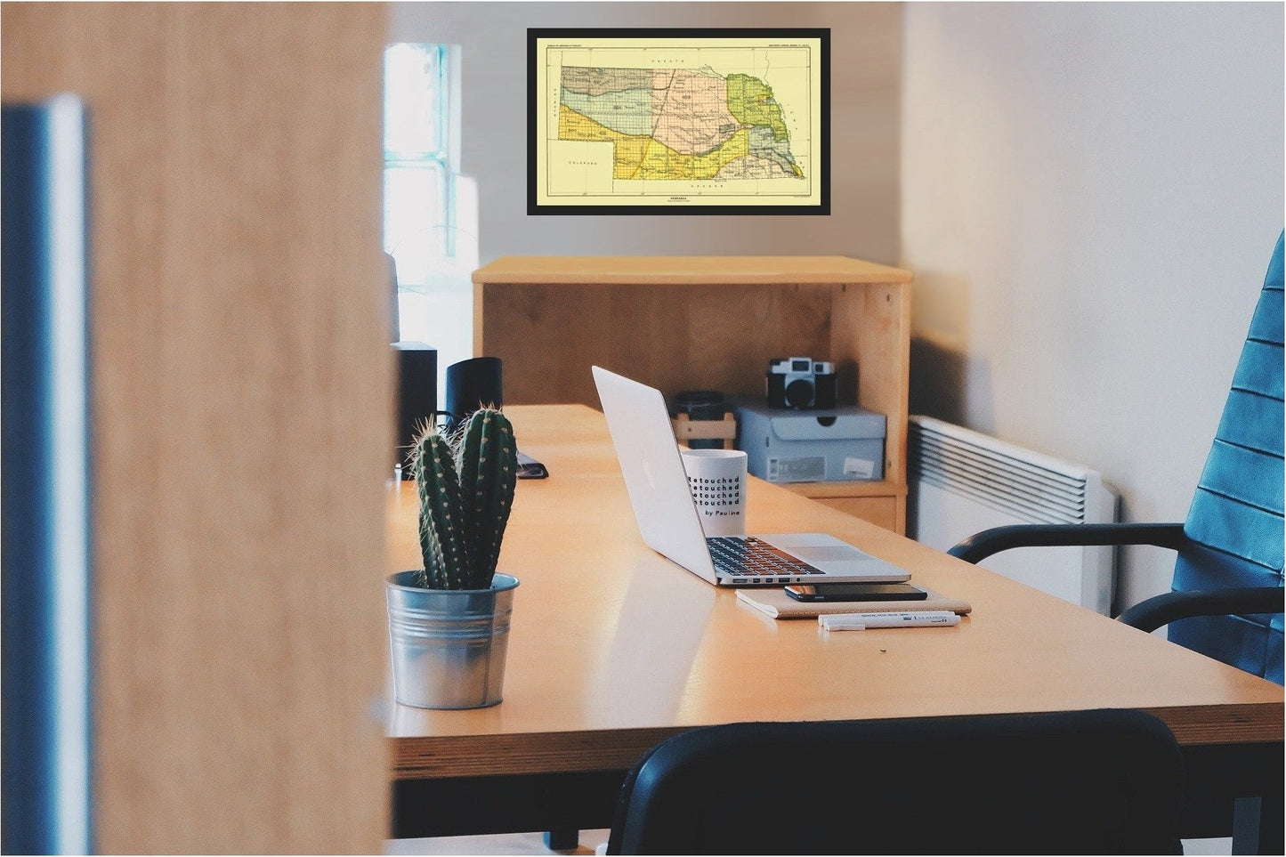 Old State Maps - Nebraska - Hoen 1896 - This is an exquisite full-color Reproduction printed on high-quality gloss paper, art paper or canvas.