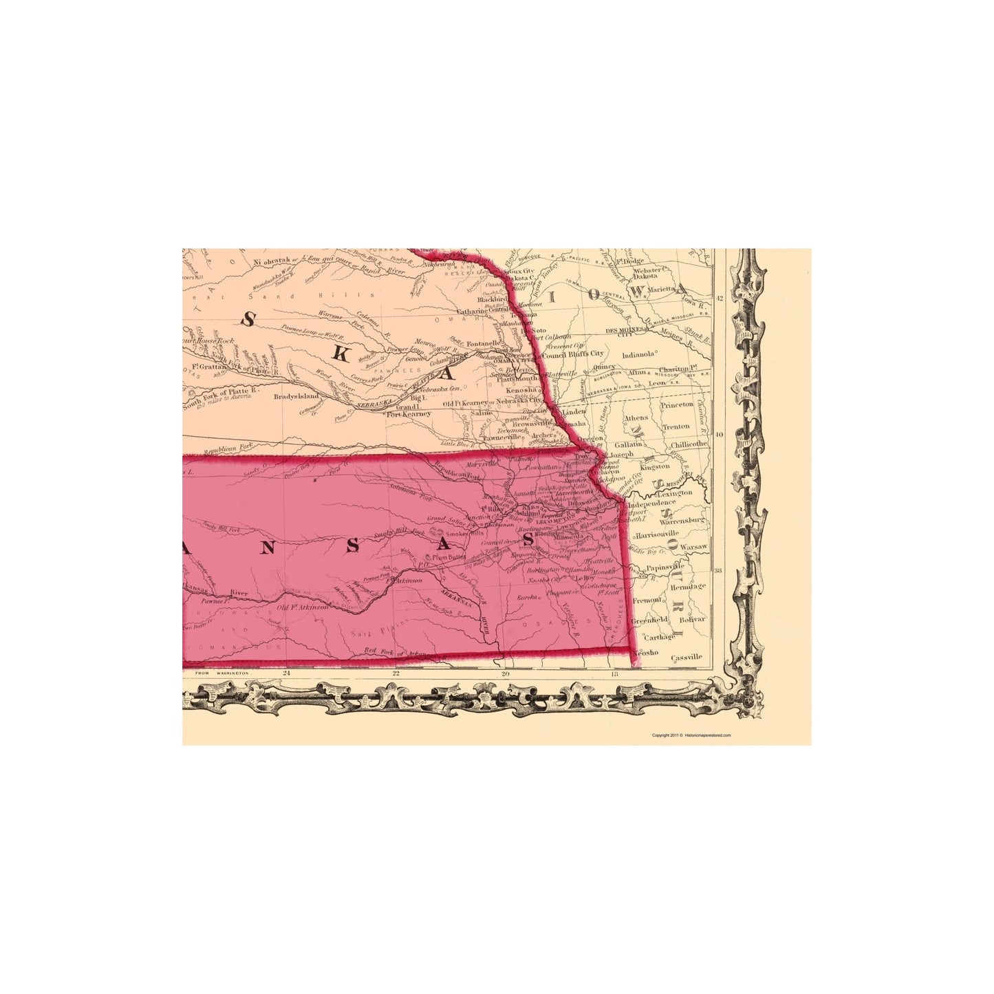 Historic State Map - Nebraska Kansas - Johnson 1860 - 23 x 29.13 - Vintage Wall Art