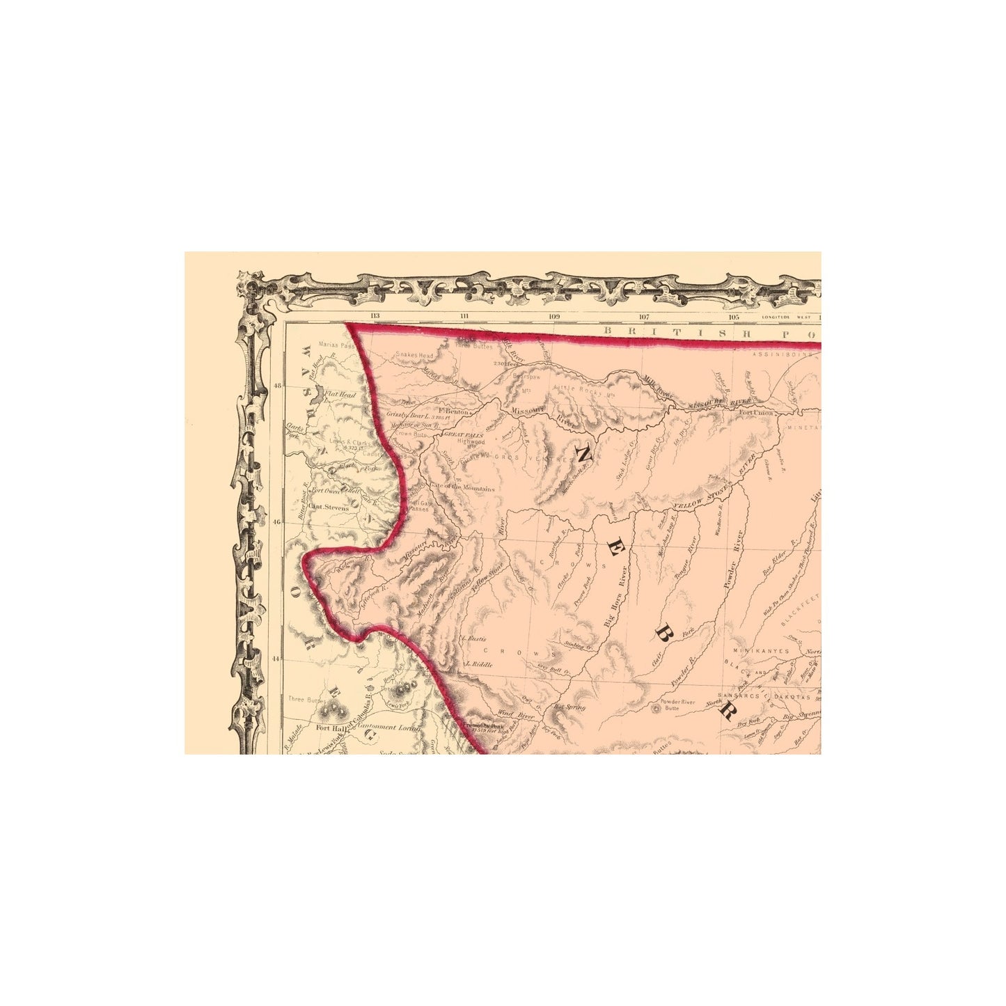 Old State Map - Nebraska, Kansas - Johnson 1860 - This is an exquisite full-color Reproduction printed on high-quality gloss paper, art paper or canvas.