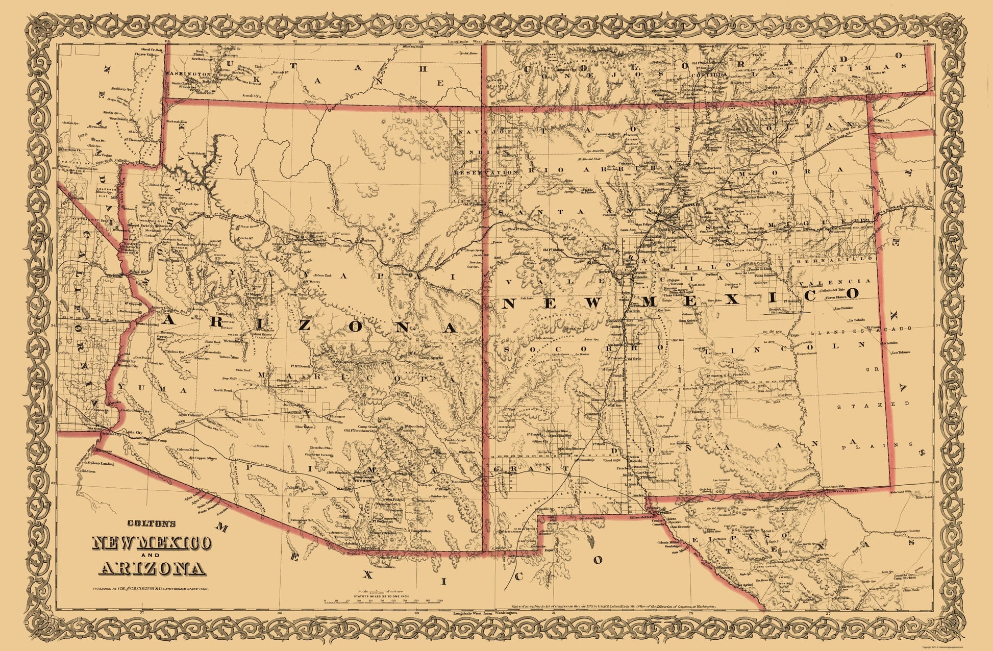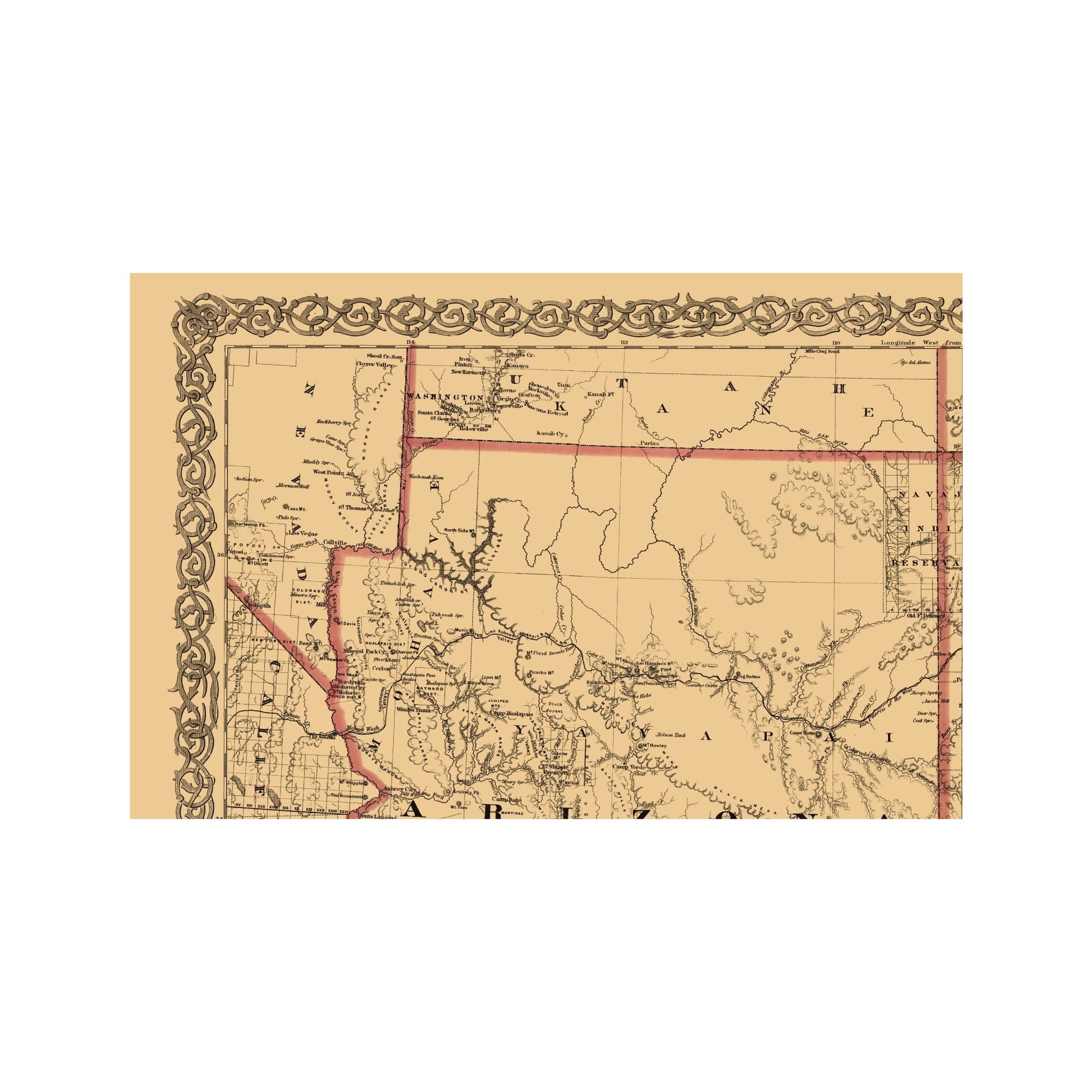Old State Map - New Mexico, Arizona - Colton 1873 - This is an exquisite full-color Reproduction printed on high-quality gloss paper, art paper or canvas.