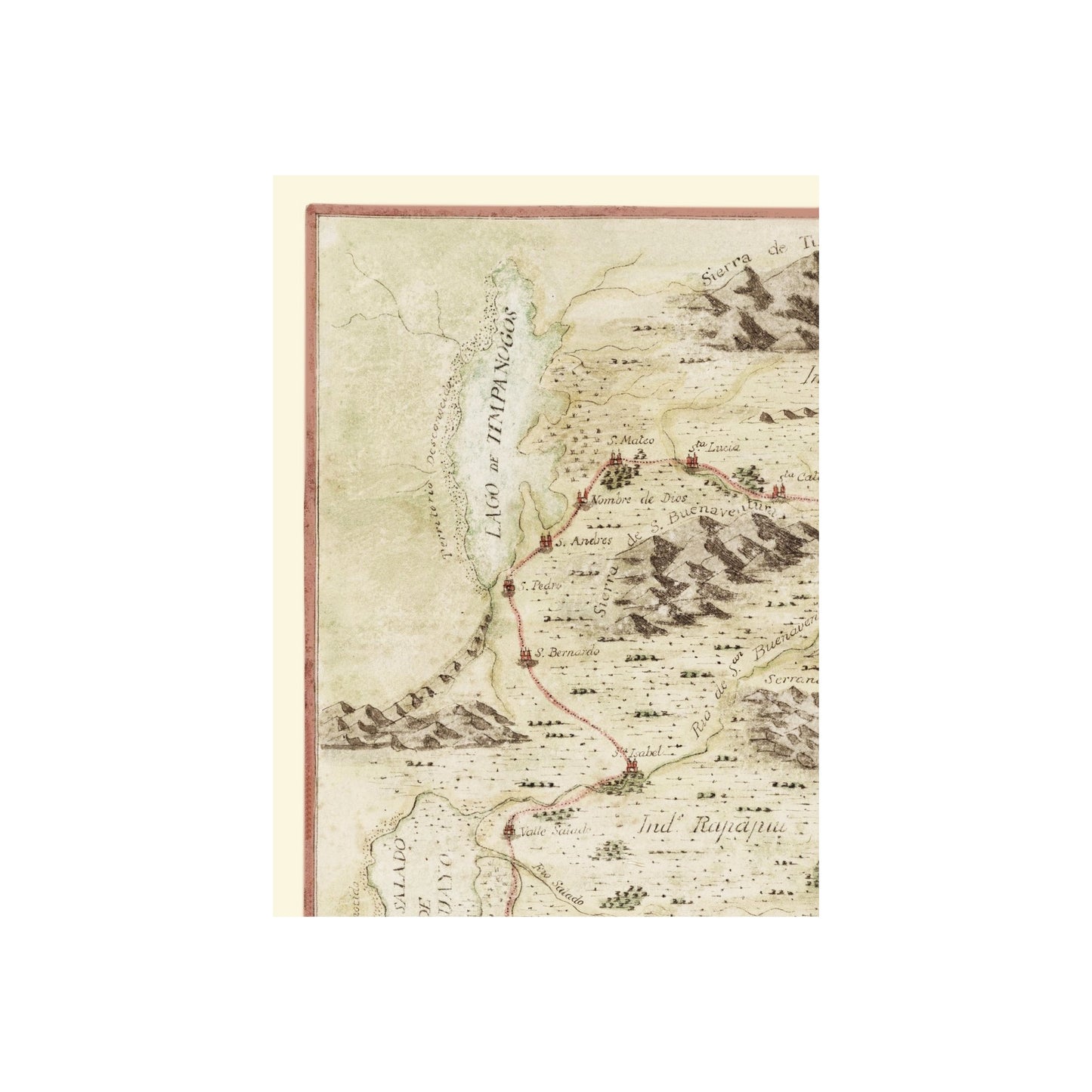 Sites and Townships Specific To This Map Are: San Andres, San Pedro, San Bernardo, Santa Isabel, San Mateo, Santa Lucia, Santa Catolina, Valle Saiado, Arroyo Tesedon, Santa Brigida, San Rustico, San Josep, Diego, Penon, San Samud, Santa Gertrudis, San Bulumo and many others.