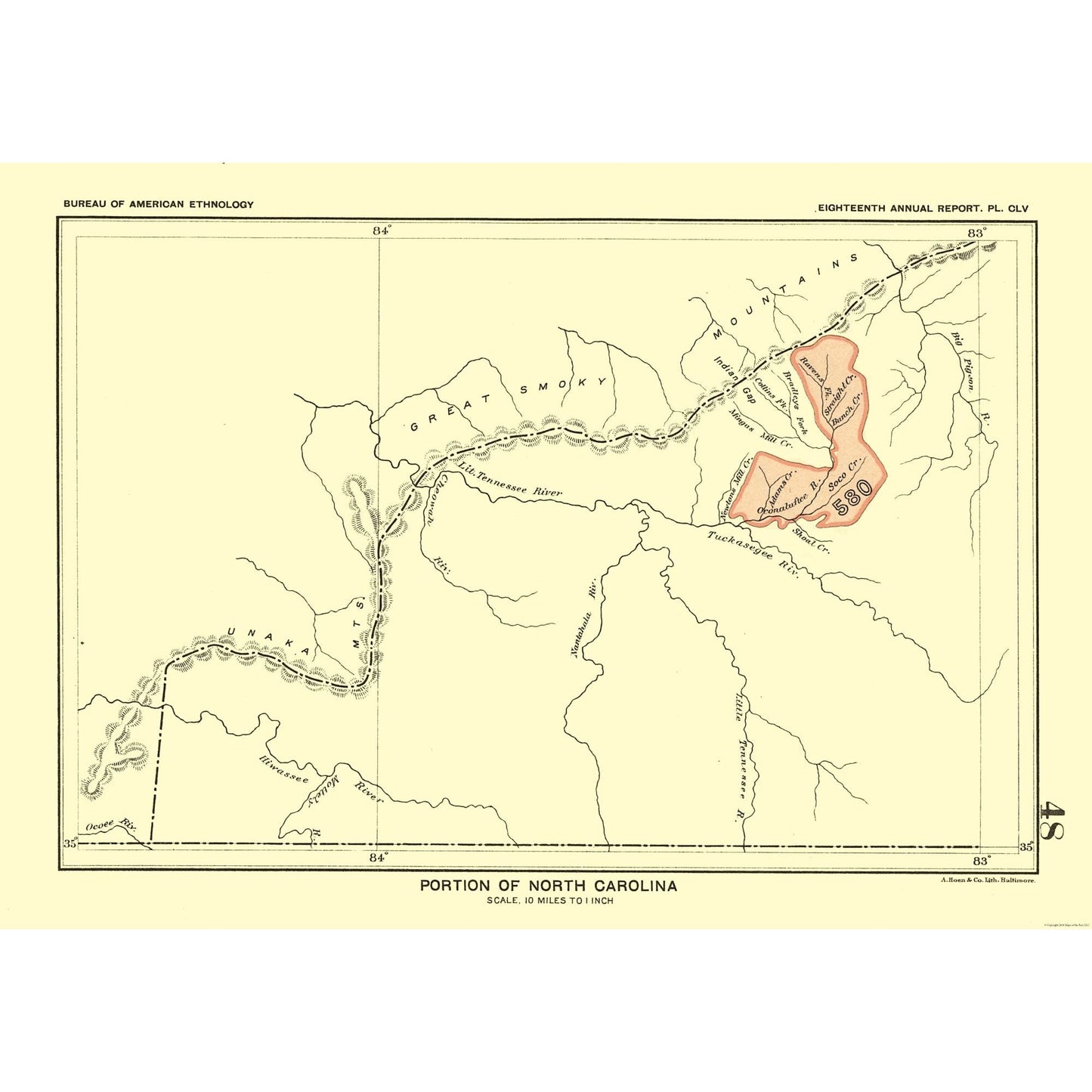 Old State Maps - North Carolina - Portion - Hoen 1896 - This is an exquisite full-color Reproduction printed on high-quality gloss paper, art paper or canvas.