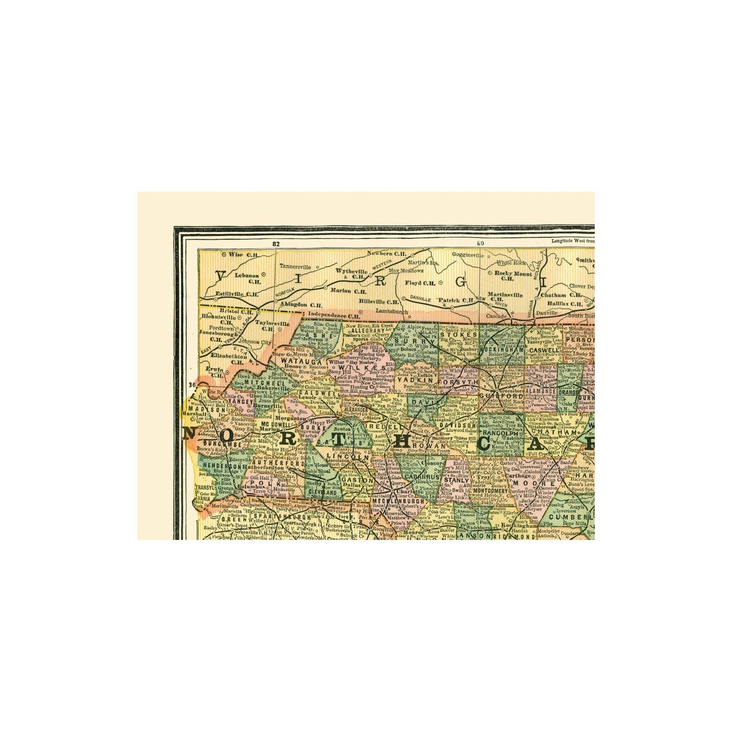 Old State Maps - North Carolina - Johnson 1888 - This is an exquisite full-color Reproduction printed on high-quality gloss paper, art paper or canvas.