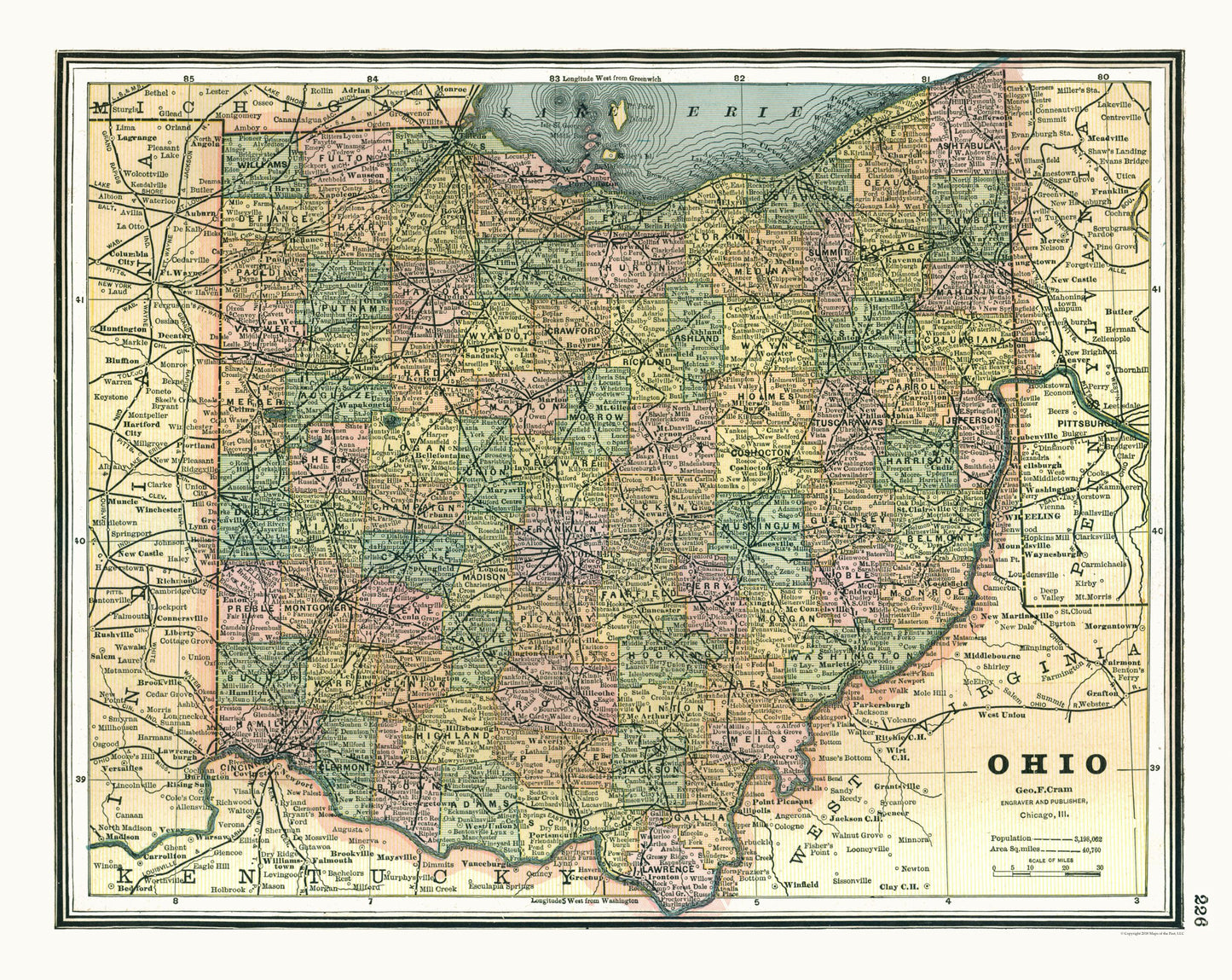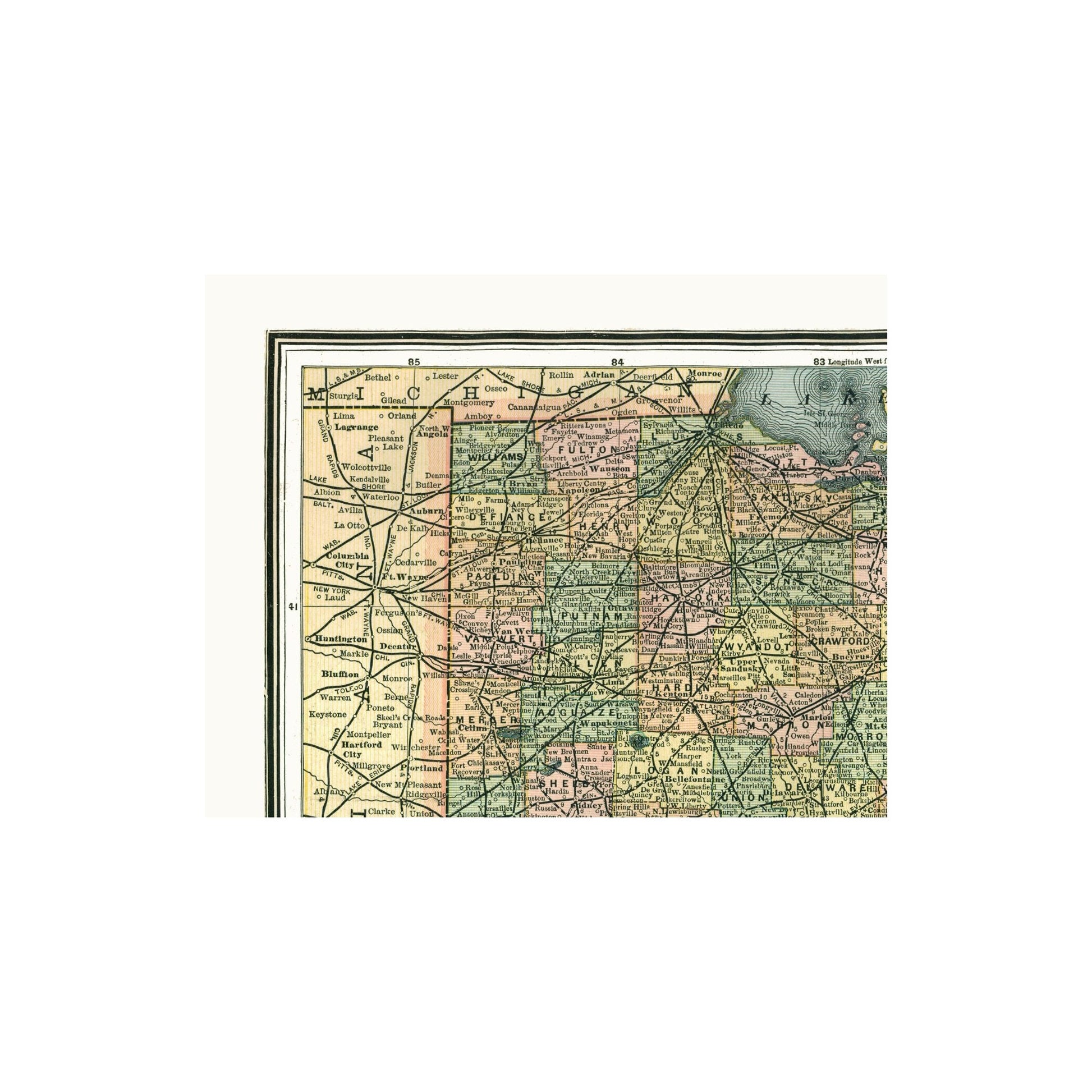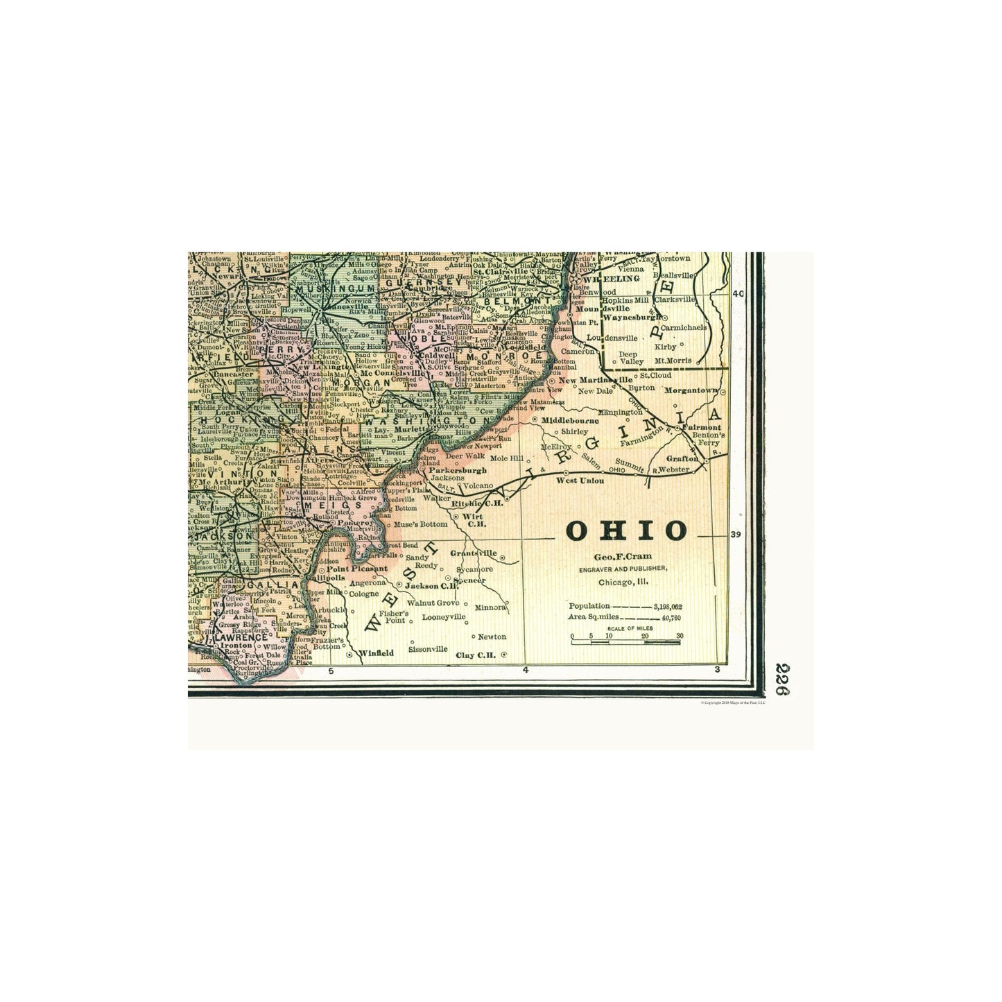 Old State Maps - Ohio - Johnson 1888 - This is an exquisite full-color Reproduction printed on high-quality gloss paper, art paper or canvas.