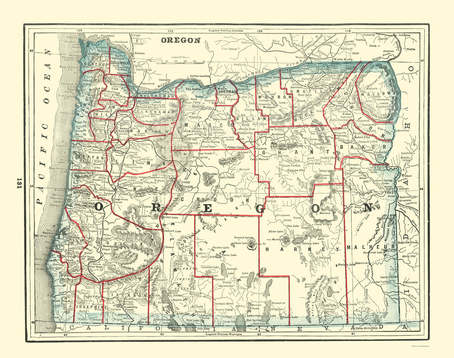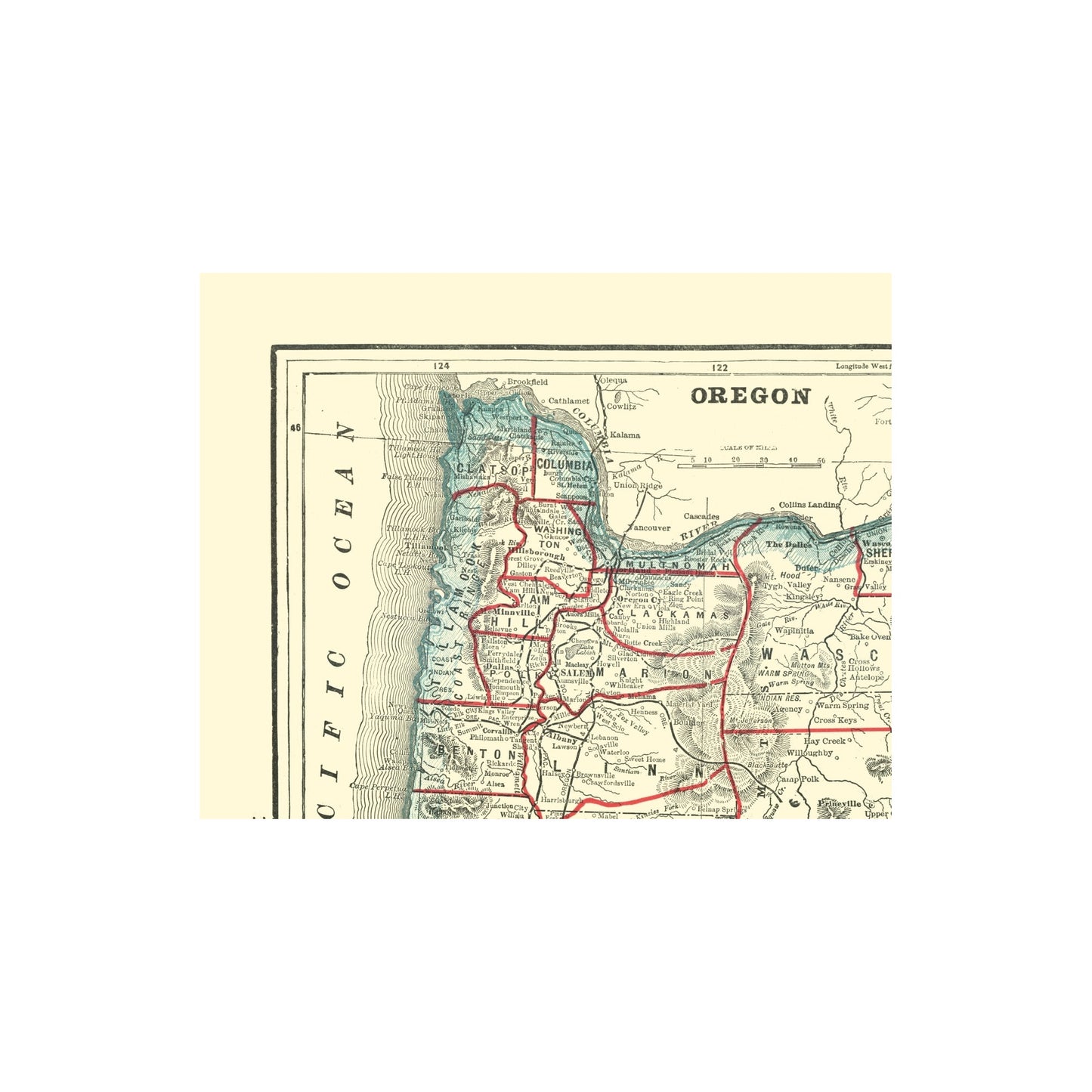 Old State Map - Oregon - Rathbun 1893 - This is an exquisite full-color Reproduction printed on high-quality gloss paper, art paper or canvas.